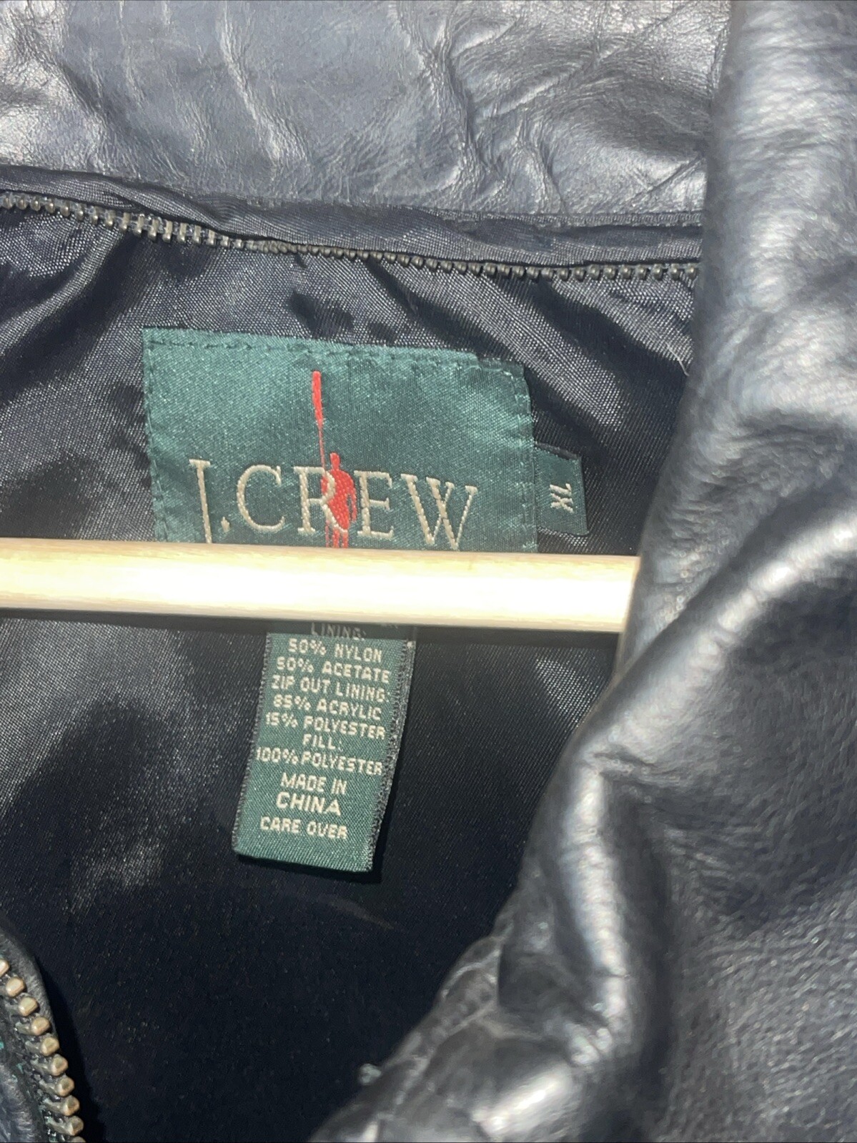 Vintage 90s J.Crew Black Leather Arms Quilted Lining Jacket Coat Men s Size XL