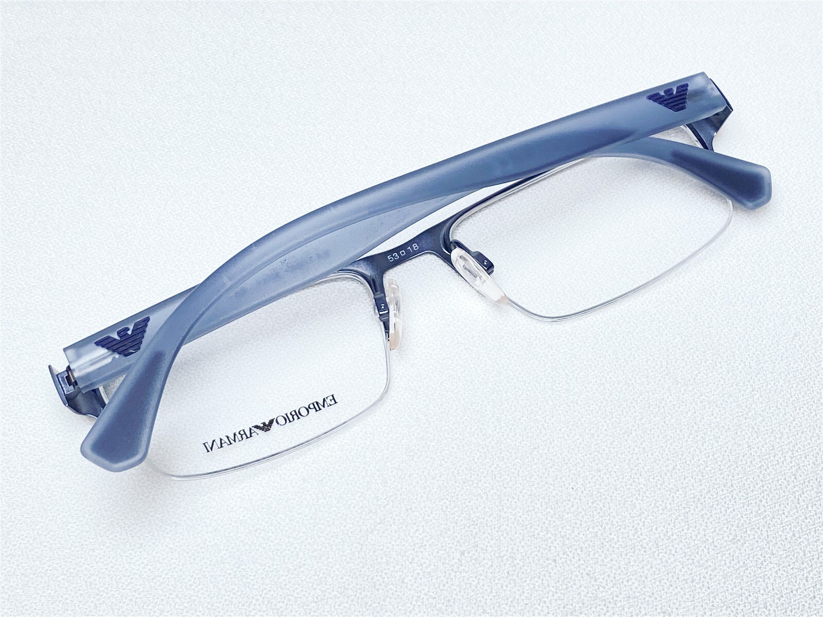 NEW Emporio Armani EA1050 3111 Men's Matte Blue Half Rim Eyeglasses Frames 53/18