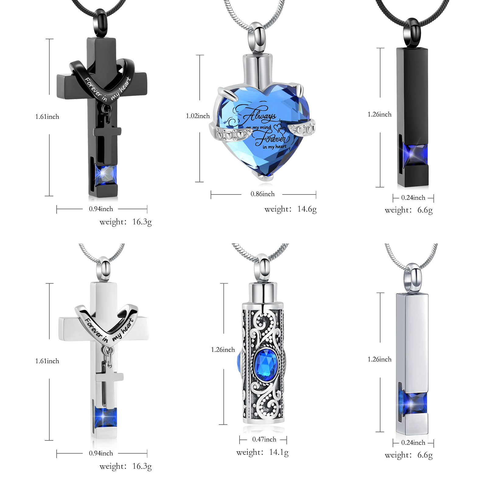 6 Pack Ashes Necklace Urn Necklace for Ashes Cremation Necklace for Human / Pet