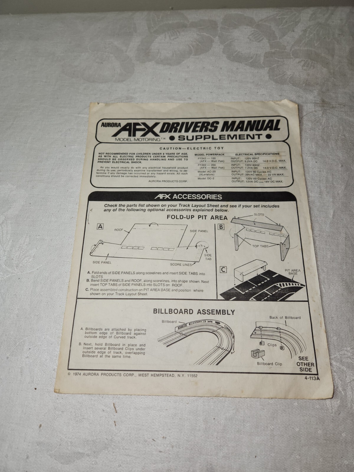 Vintage 1972 Aurora AFX Model Motoring Driver's Manual Assembly Instructions