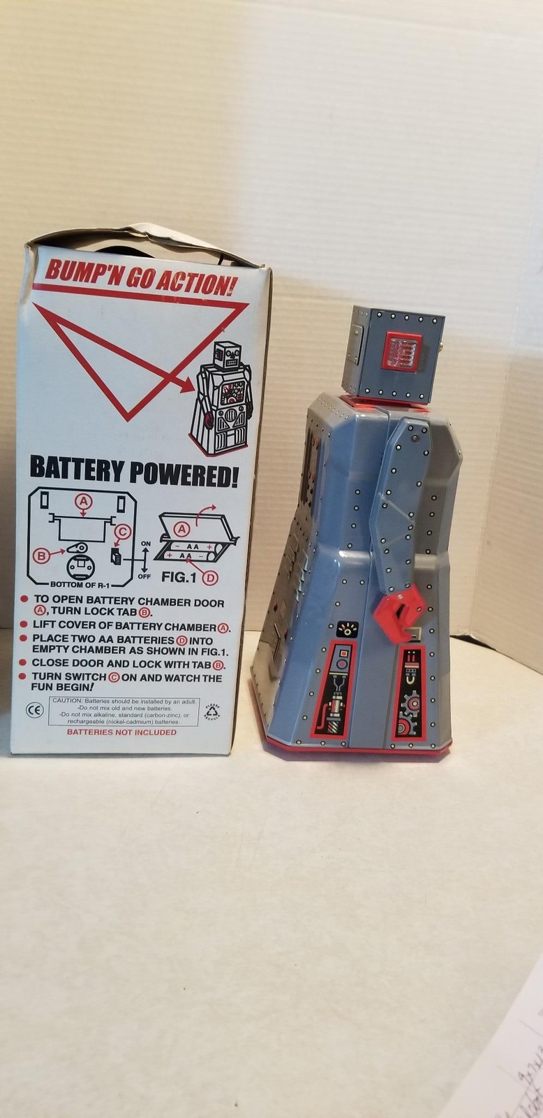 R1 Tin Battery Operated 12 Robot Bump N Go Flashing Lights Boxed Works BB4