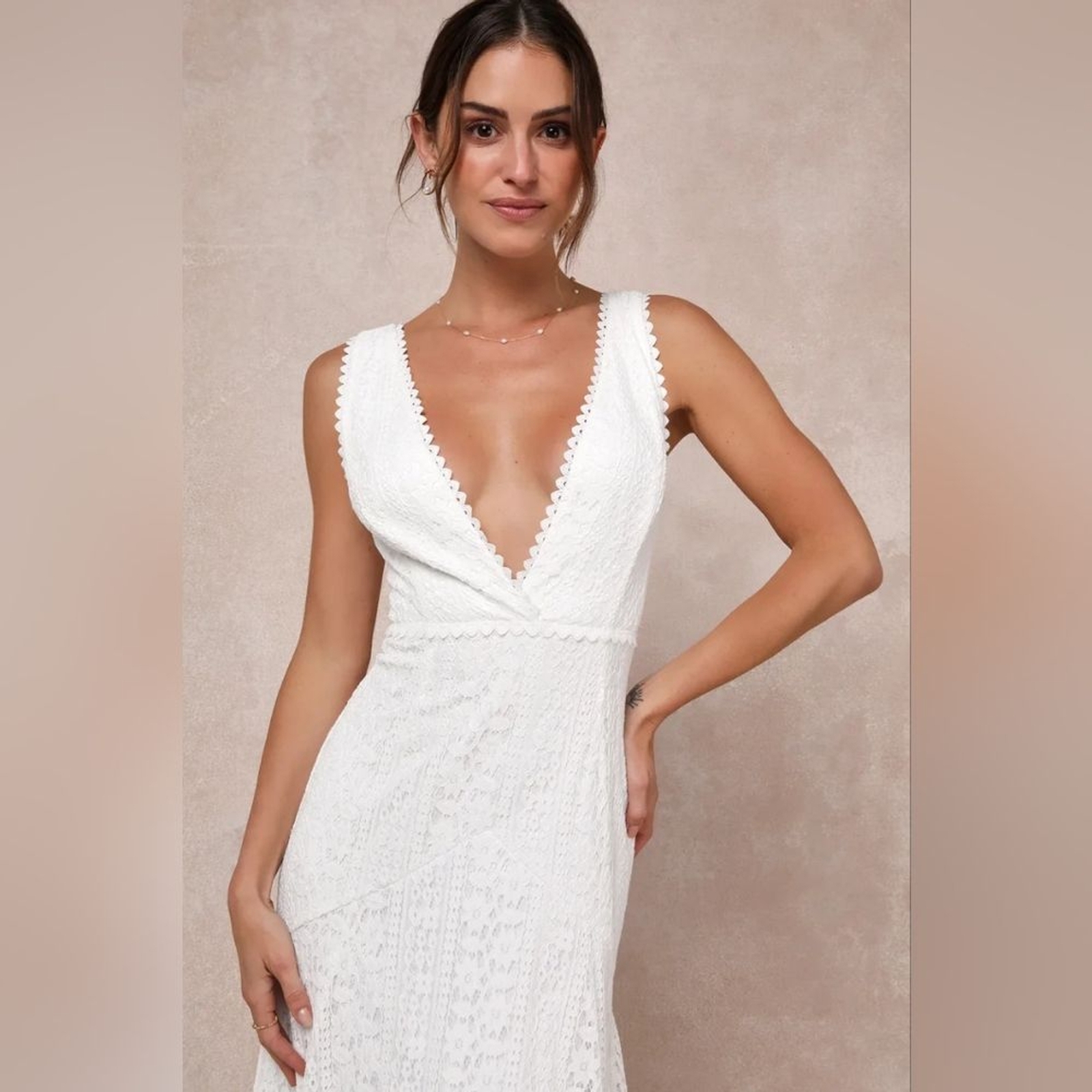 как выглядит Lulus Infinite Bliss Ivory Lace Sleeveless Backless Trumpet Maxi Dress S Bride фото