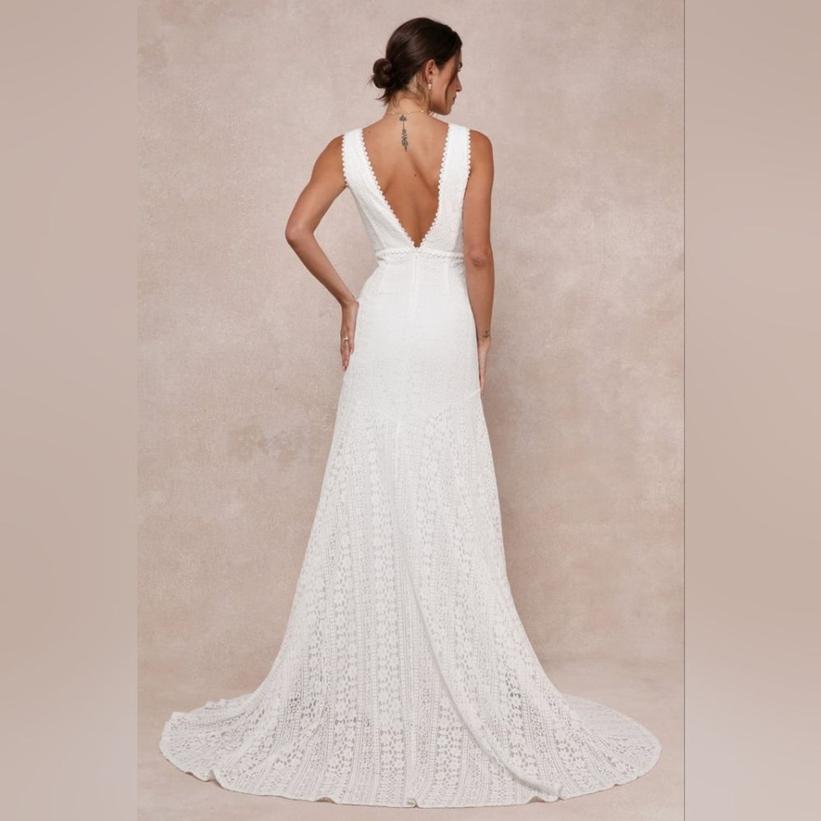 Lulu's Infinite Bliss Ivory Lace Sleeveless Backless Trumpet Maxi Dress S Bride