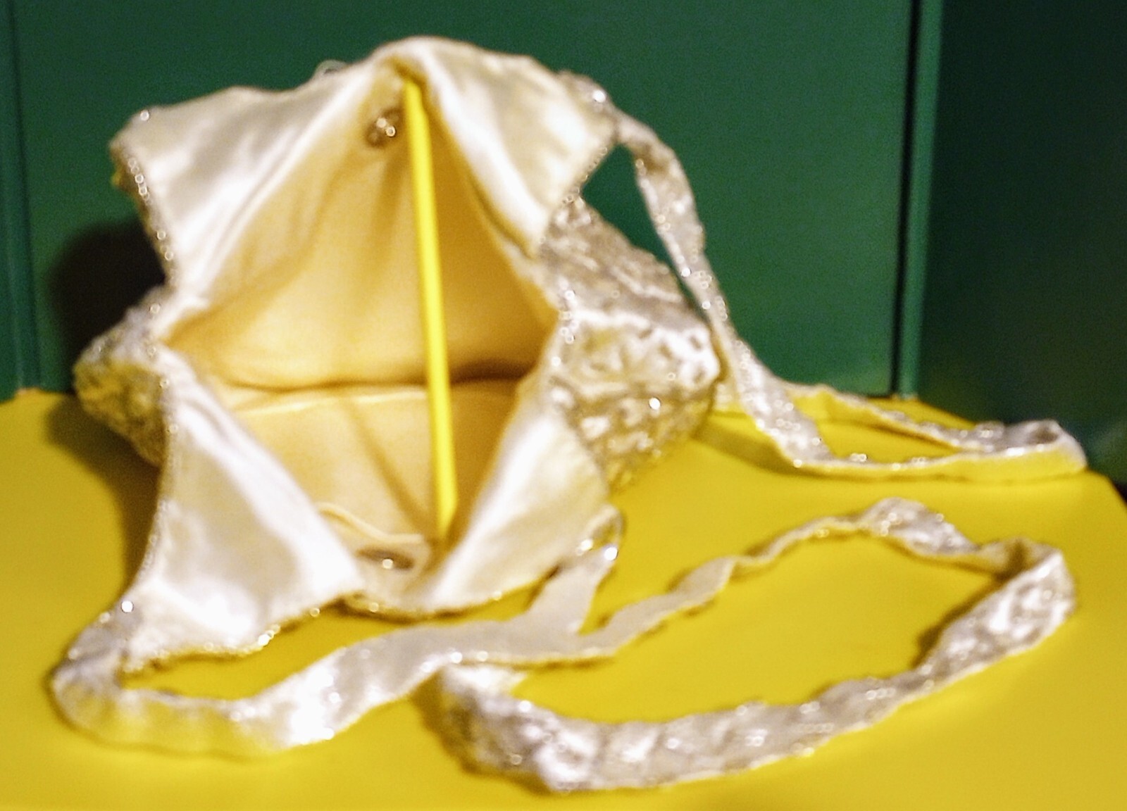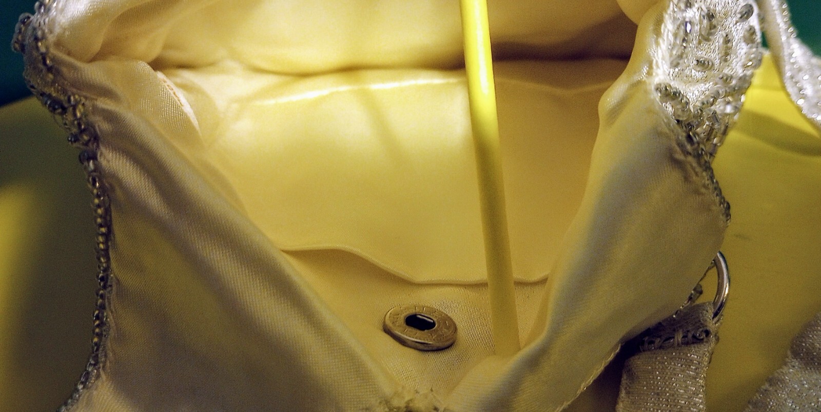 как выглядит Vintage Walborg White Beading Over Silvery Material Double Handed Evening Bag фото