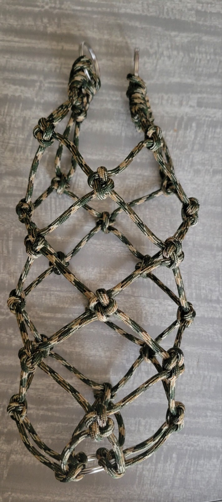 Versatile Handmade Bottle Holder. Durable Paracord Netting W/rings in Camouflage