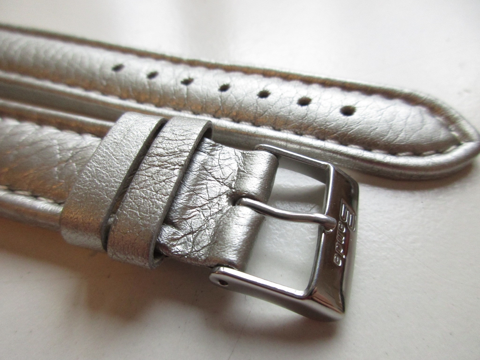 как выглядит Shiny grey- silver padded 20 MM leather watch band strap фото