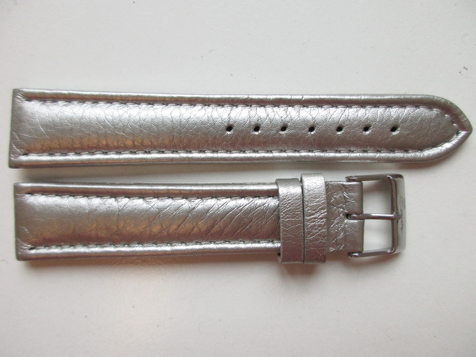 Shiny grey- silver padded 20 MM leather watch band strap
