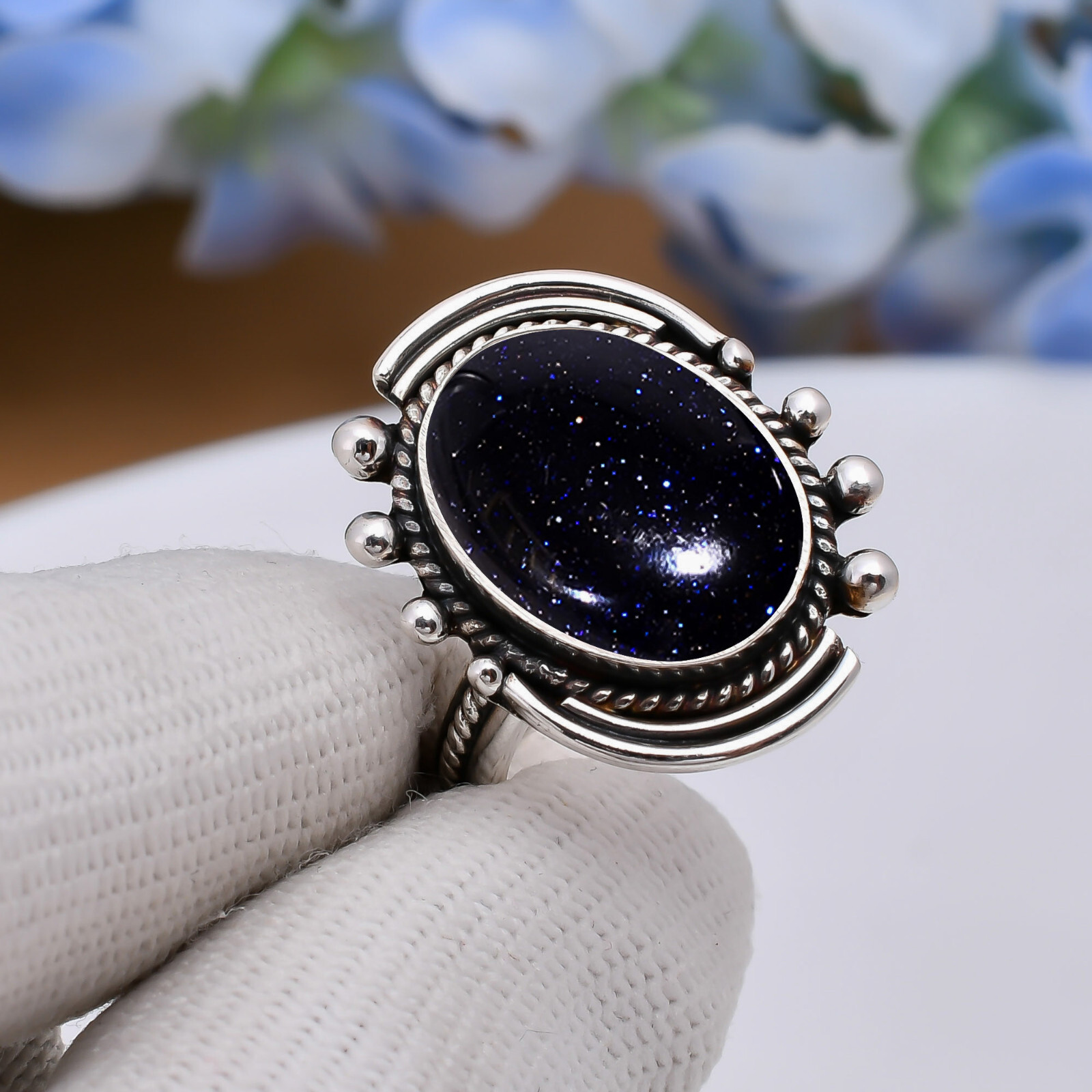 Natural Blue Sunstone Gemstone 925 Sterling Silver Ring Jewelry Gift For Friends