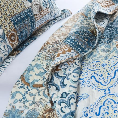 Cotton Bedspread Quilt Bedding Sets Reversible Coverlet Comforters Blue