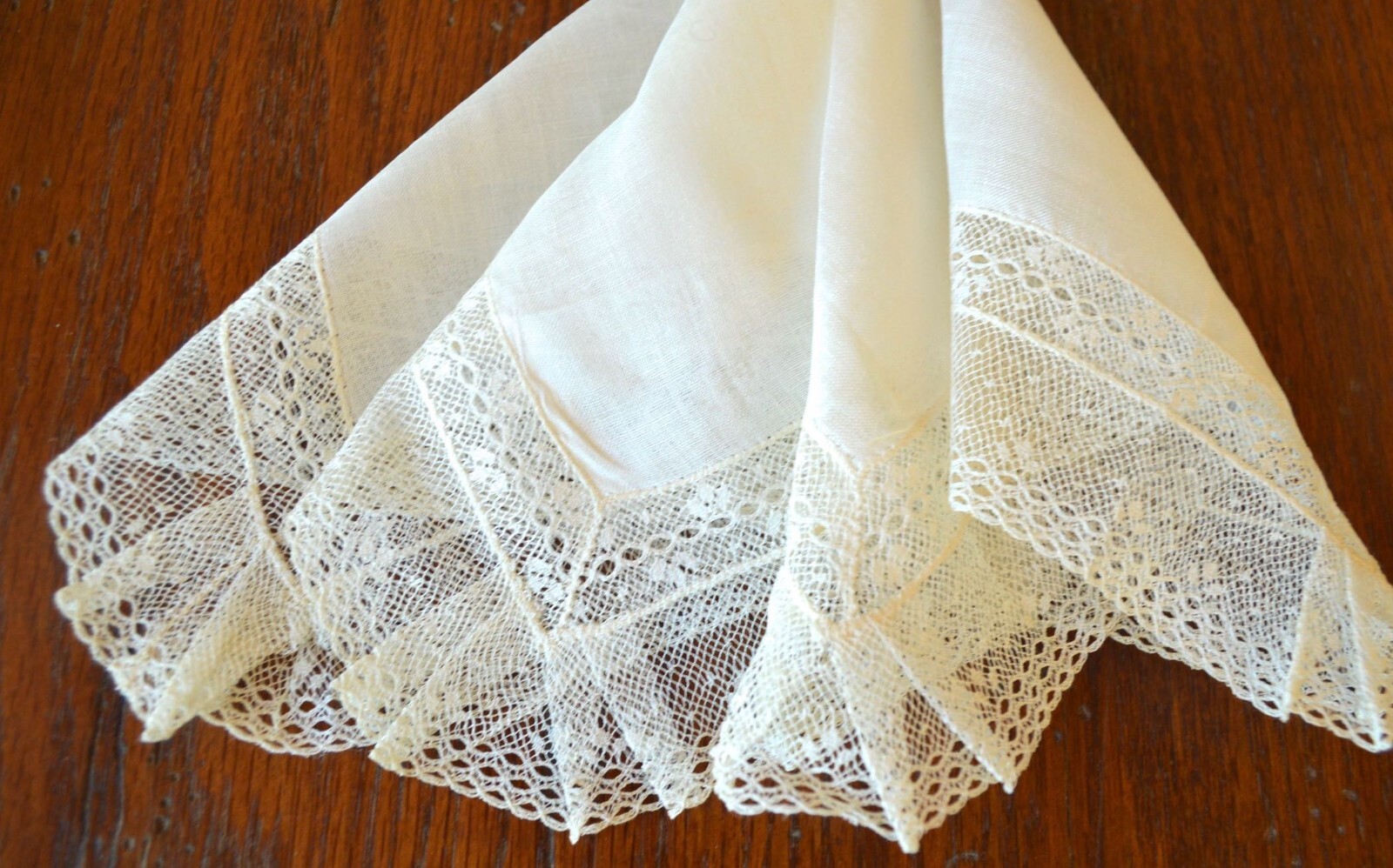 как выглядит VINTAGE HANKY 1900s LINEN VALENCIENNES LACE DOUBLE ROW OFF WHITE EXQUISITE NEW фото