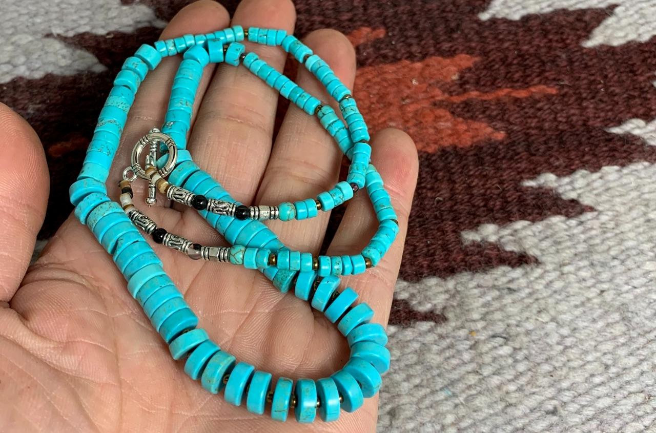 Gorgeous graduate size turquoise heishi necklace/21 y241o-w1.5