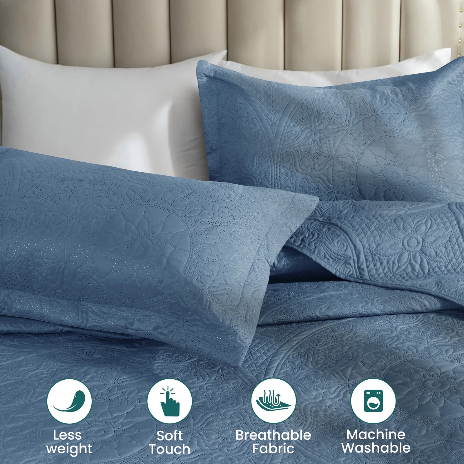 как выглядит 3 Piece Quilted Bedspread Queen King Size Ultra Soft Coverlet Comforter Set фото