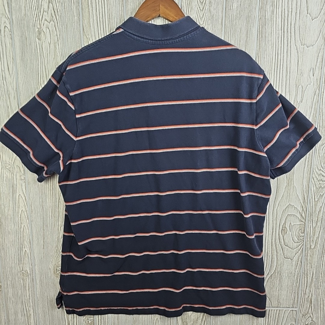 как выглядит Eddie Bauer Golf Polo Shirt Mens XL Blue Red Striped Short Sleeve Collared фото