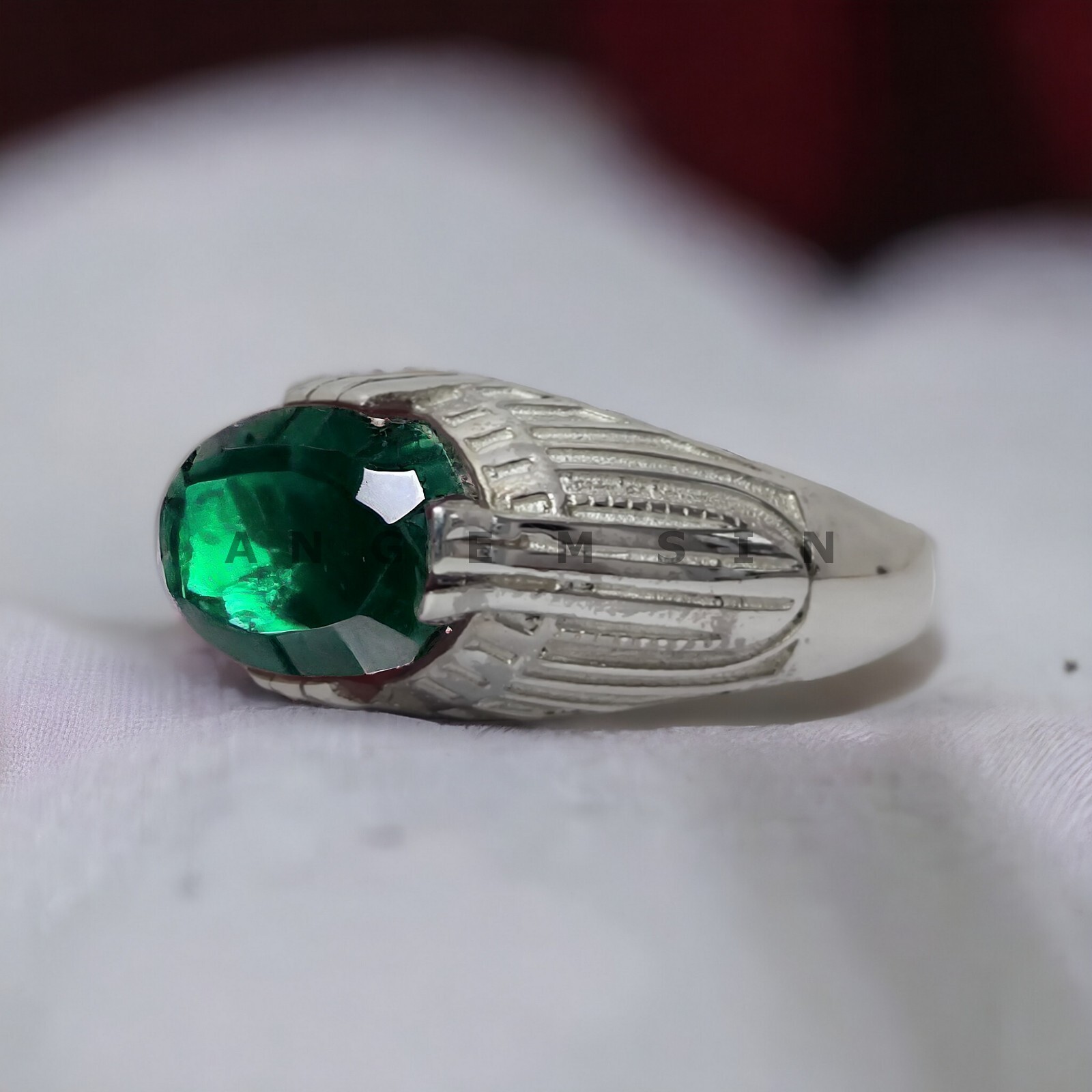 Emerald Gemstone With 925 Sterling Silver Ring For Men's AL657