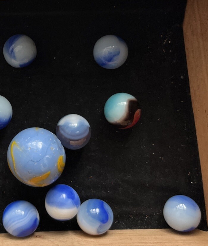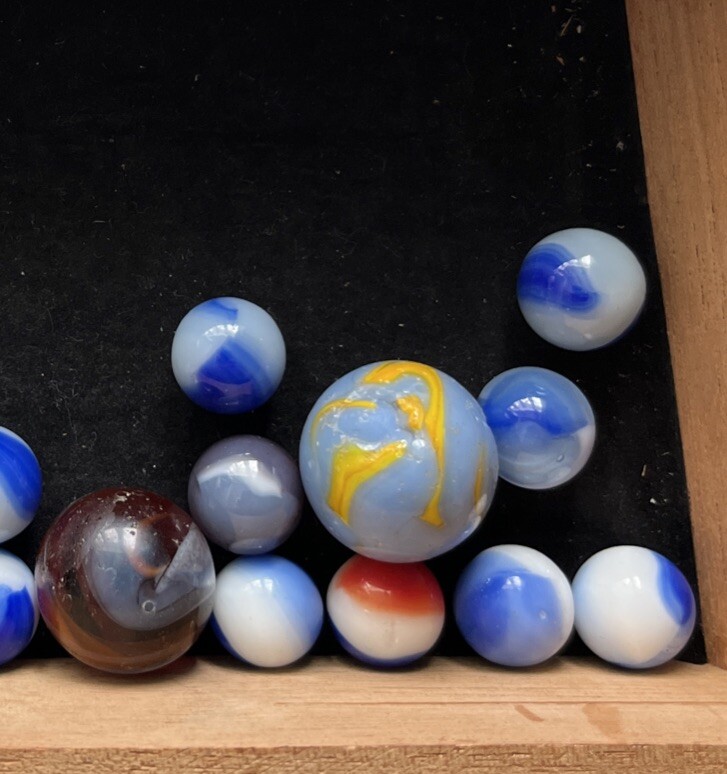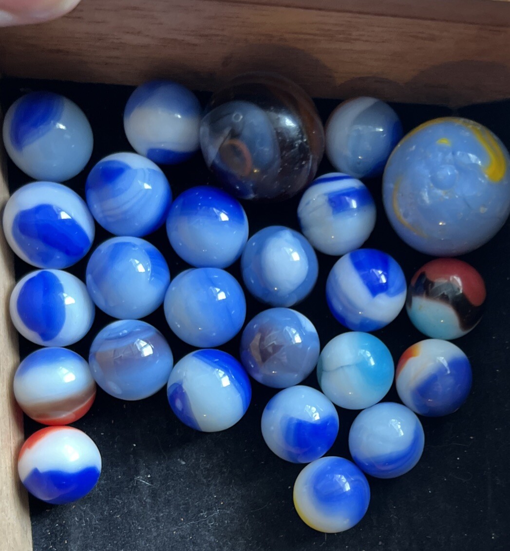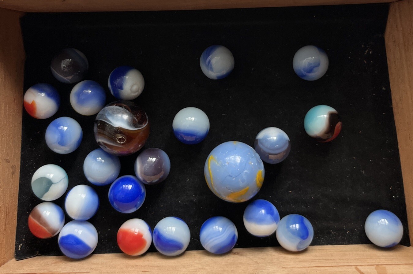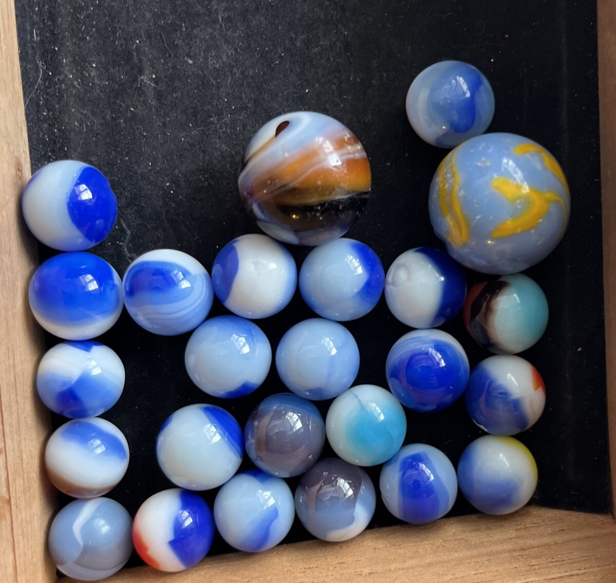 Vintage Marbles Shooters Lot Patch Swirl Agate Vitro Marble King Blue Mixed