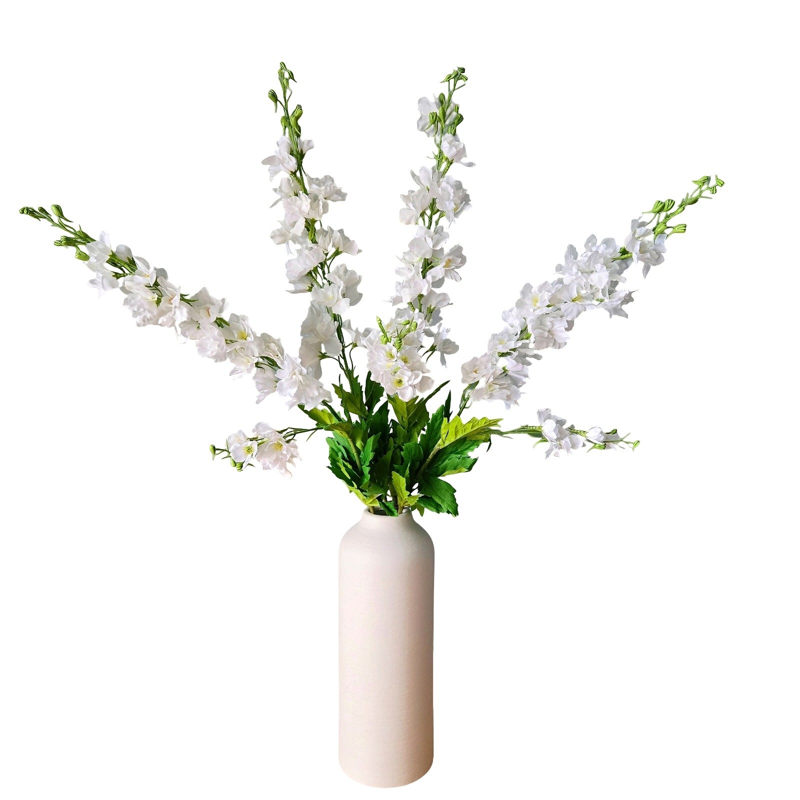 4Pcs White Delphinium Artificial Flowers, 33.46 Real-Look Silk Stems for Decor.