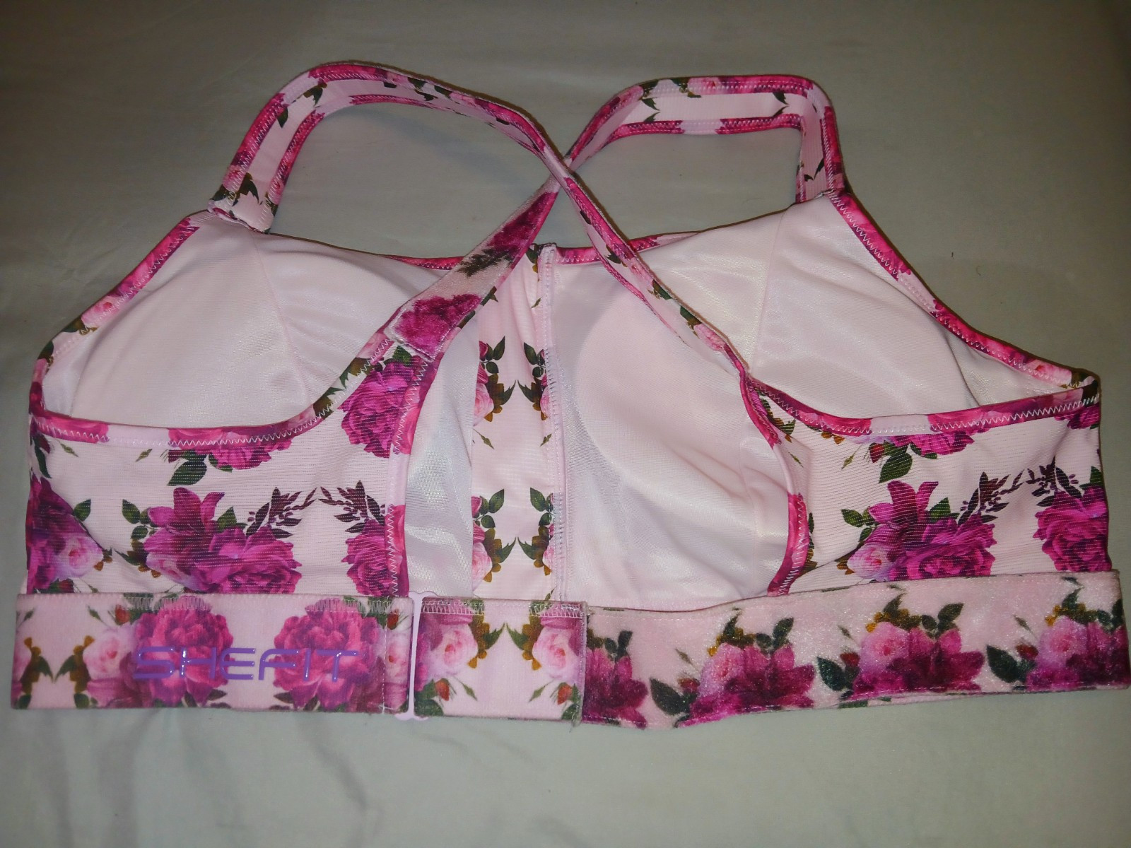 SheFit Ultimate Sports Bra 4 Luxe Floral Rose Print Adjustable Front Zip NWOT
