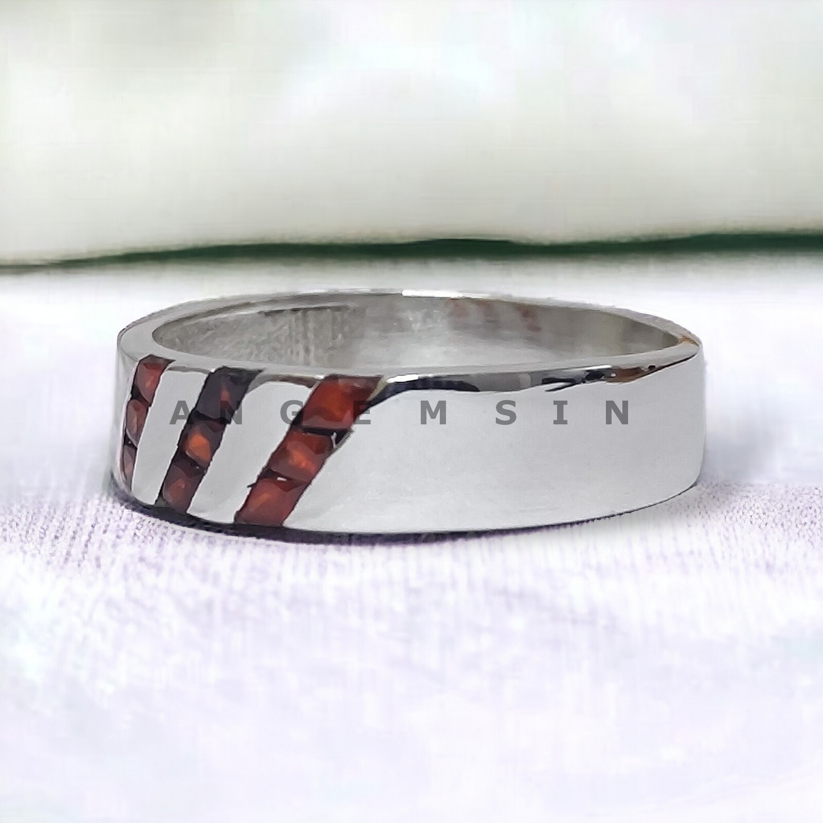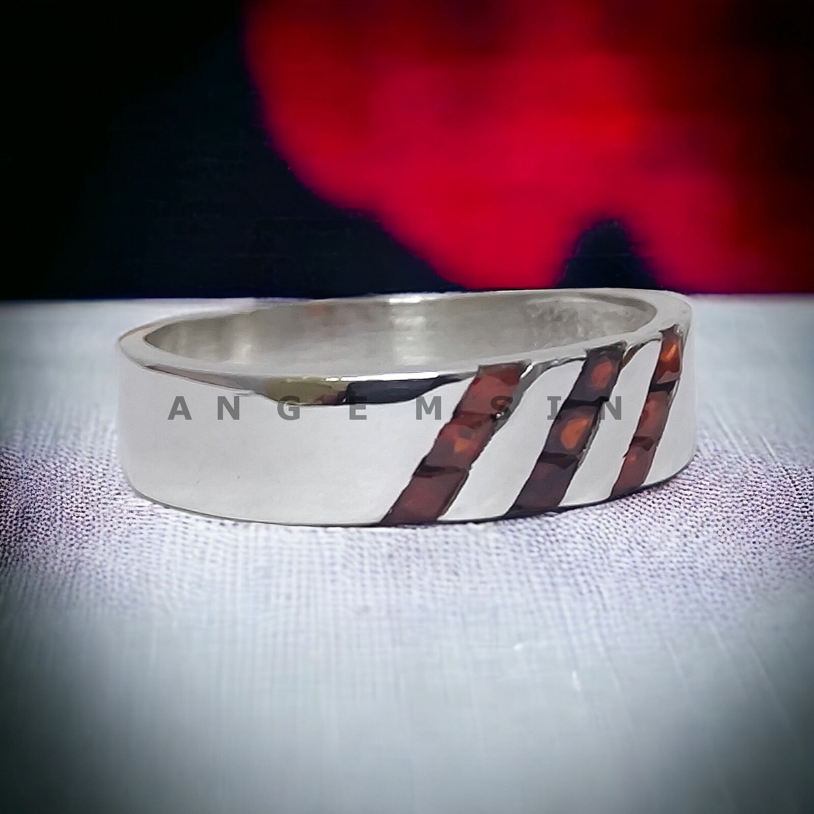 Garnet Gemstone With 925 Sterling Silver Ring For Men's AL685