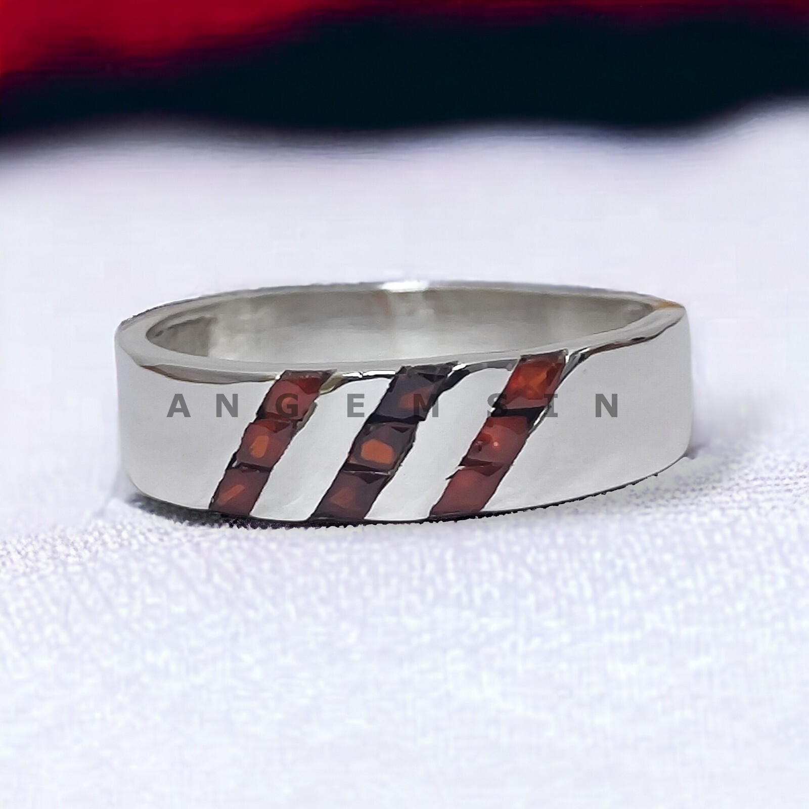 как выглядит Garnet Gemstone With 925 Sterling Silver Ring For Men