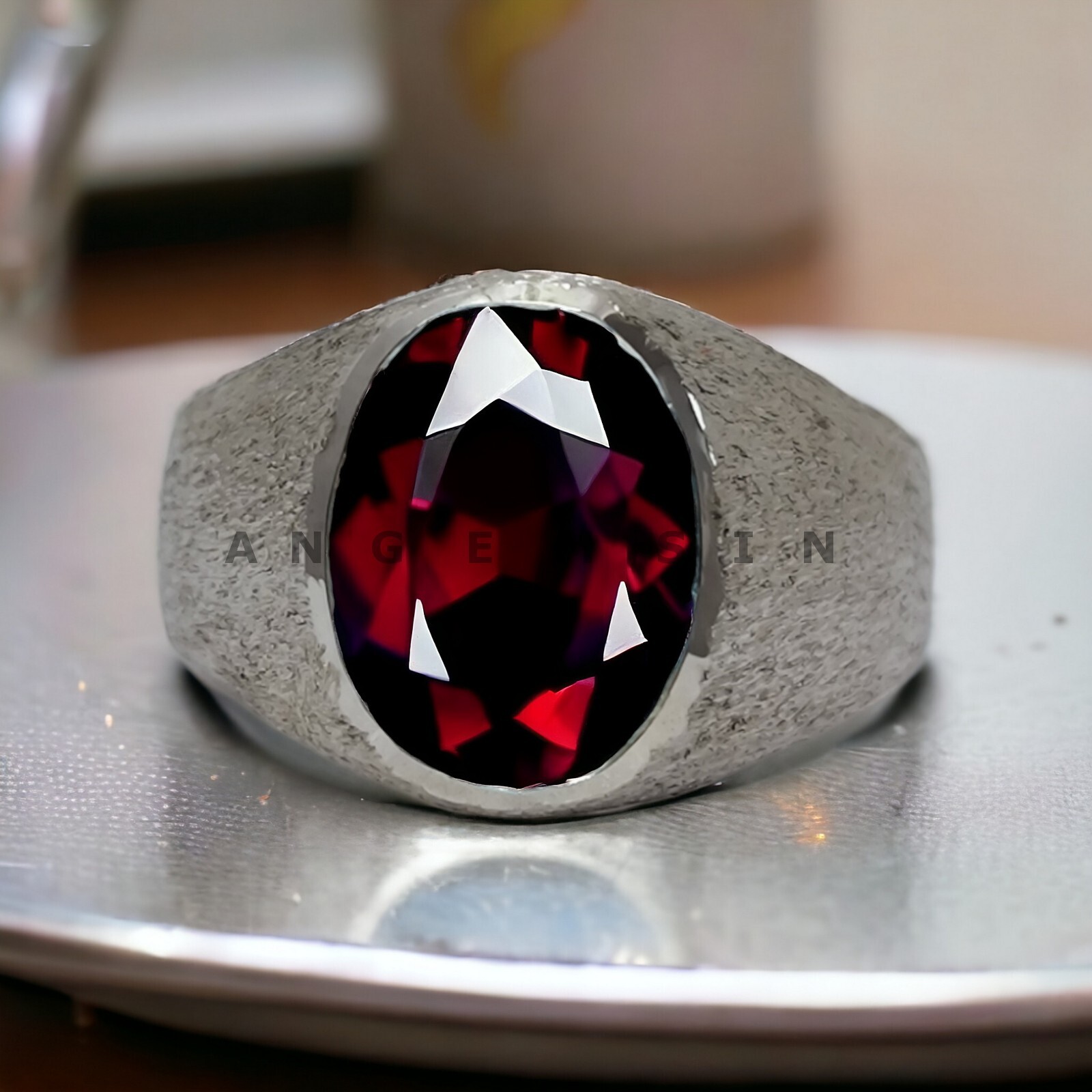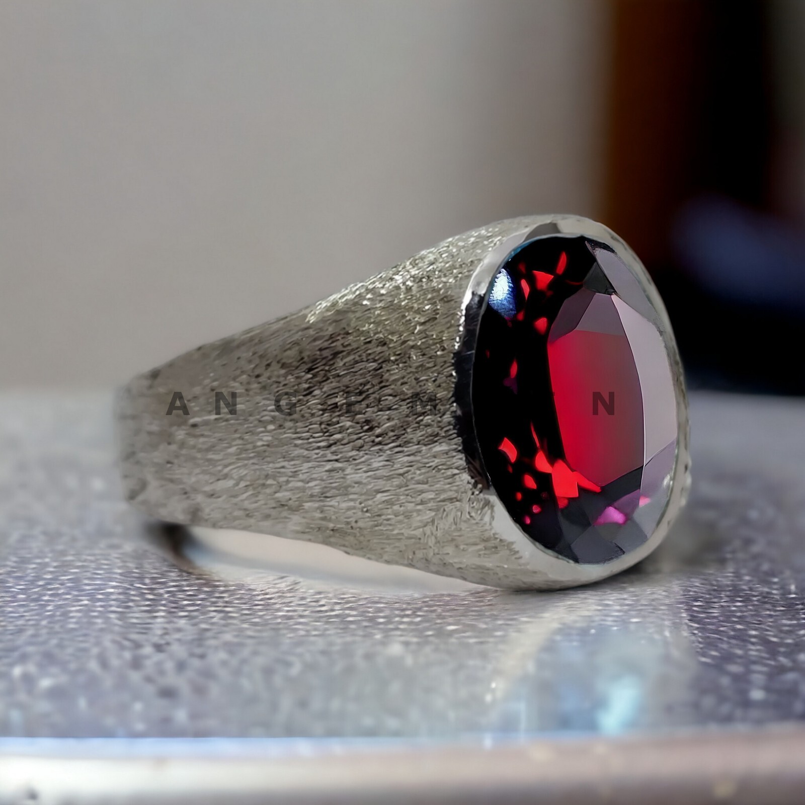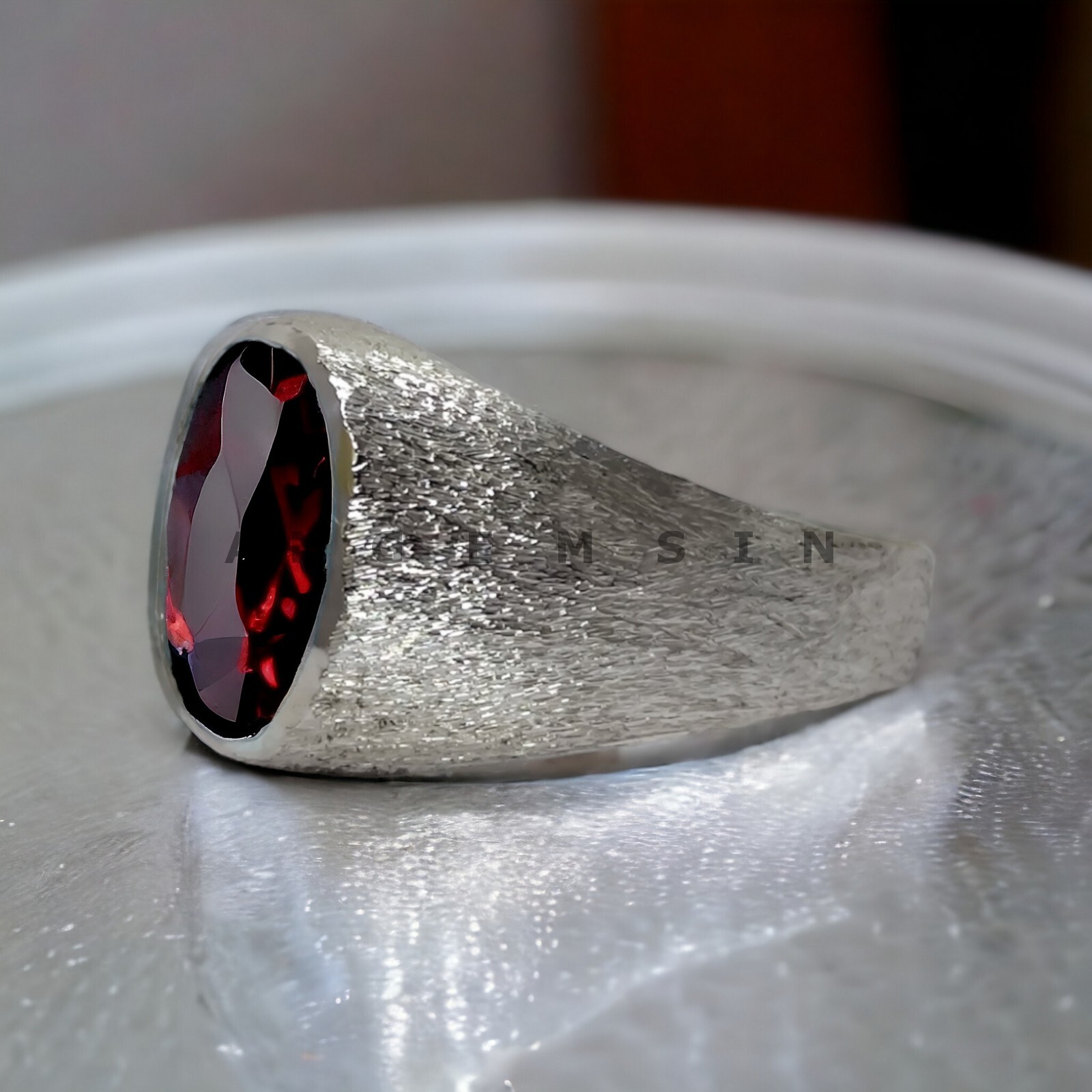 как выглядит Garnet Gemstone With 925 Sterling Silver Ring For Men