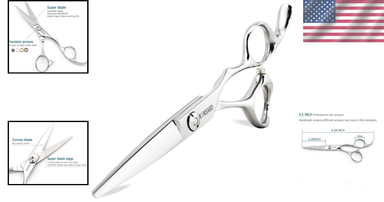 Ergonomic 5.5 Hair Cutting Shears with Polished Convex Blades - 440C Steel