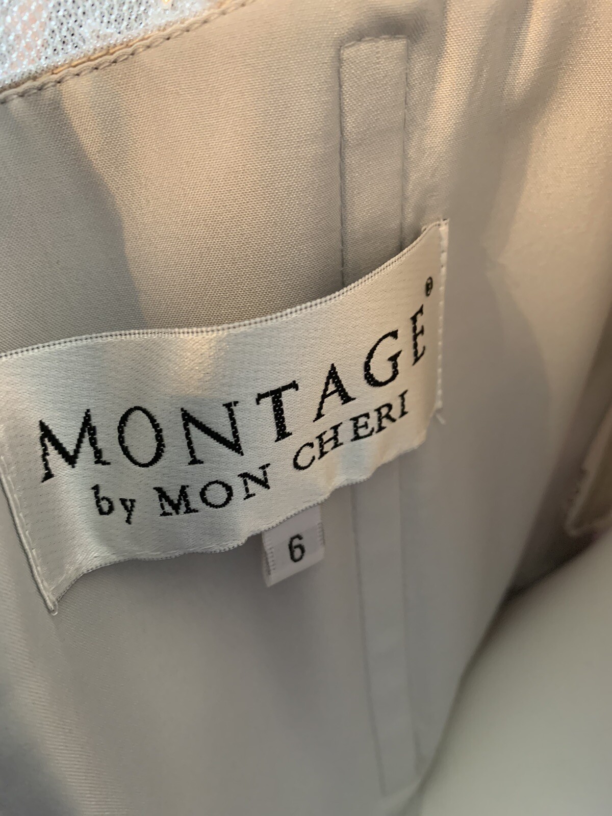 как выглядит Montage by Mon Cheri Formal Gown Dress Champagne Beaded Satin Mother of Bride 6 фото