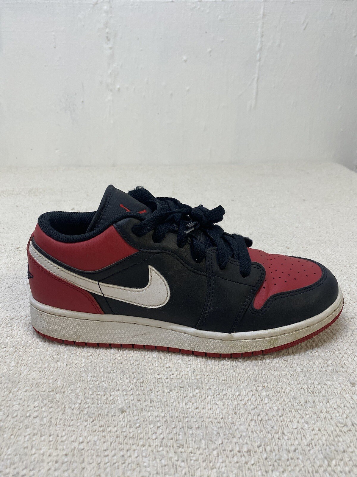 Nike Air Jordan 1 Low Bred Toe Boys Youth 5.5 Black Red 553560-066 2023