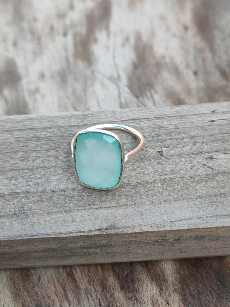 как выглядит Aqua chalcedony Ring 925 Sterling Silver Statement Beautiful Women Gift RingR04 фото