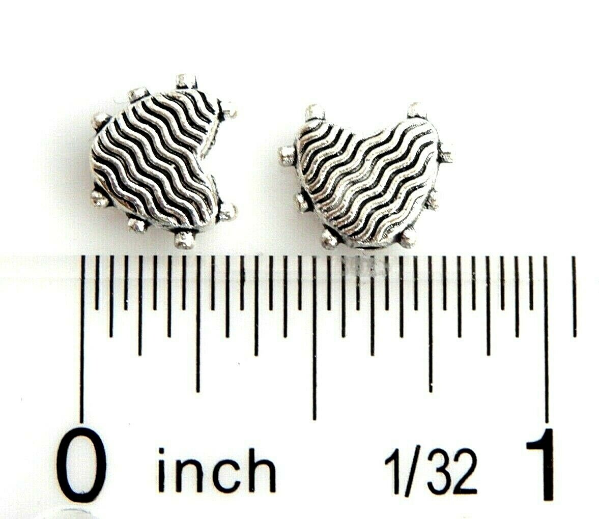 50 Antiqued Tibetan Silver Metal 10x8mm Flat Heart Stripe Bumpy Spacer Beads