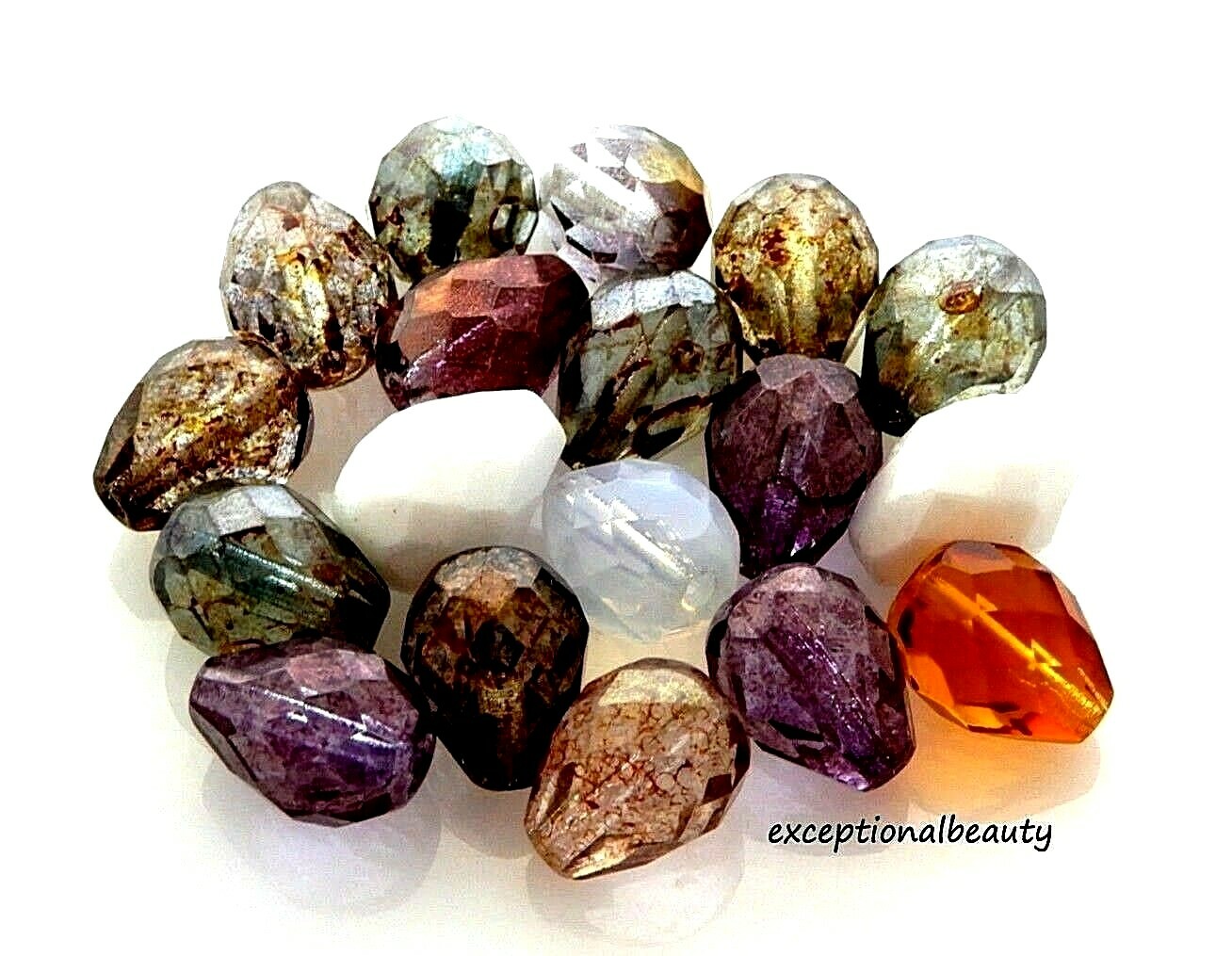 20 Assorted 13mm Picasso Opal Czech Glass Plump Tapered Teardrop Pear Mix Beads