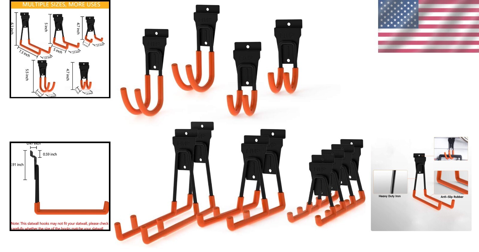 12-Pack Heavy Duty Slatwall Hooks - Smart Organization for Garage and Workshop