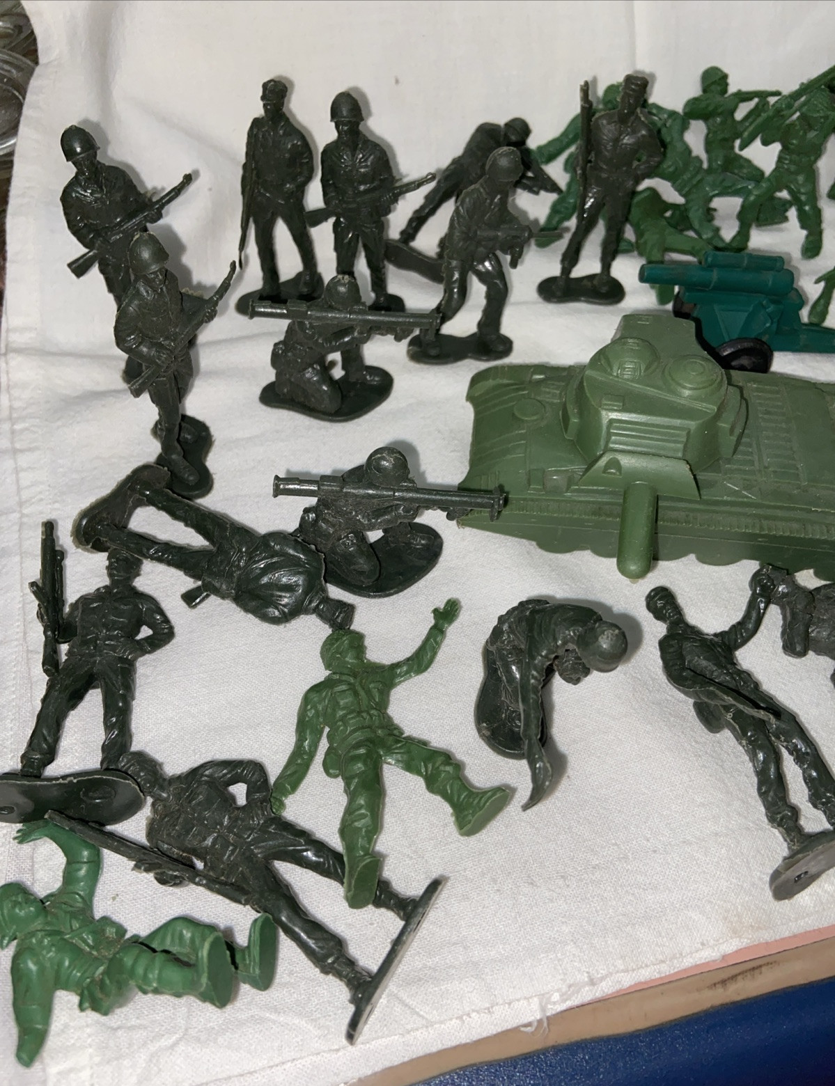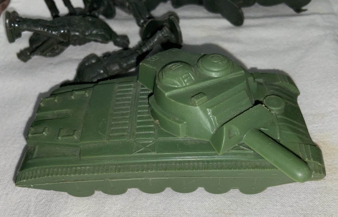 как выглядит VINTAGE LOT OF Green Plastic TOY ARMY Men Soldiers U.S.A. , Tank Cannon 39 pc фото