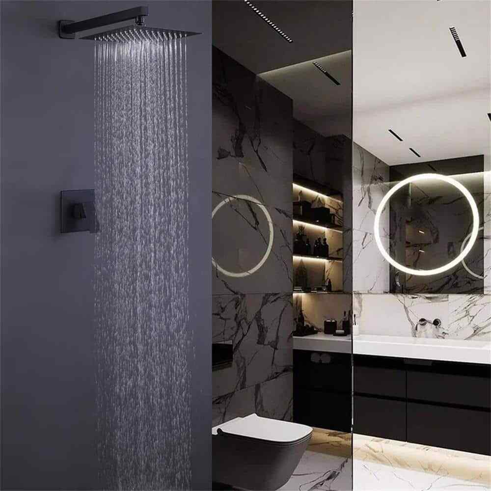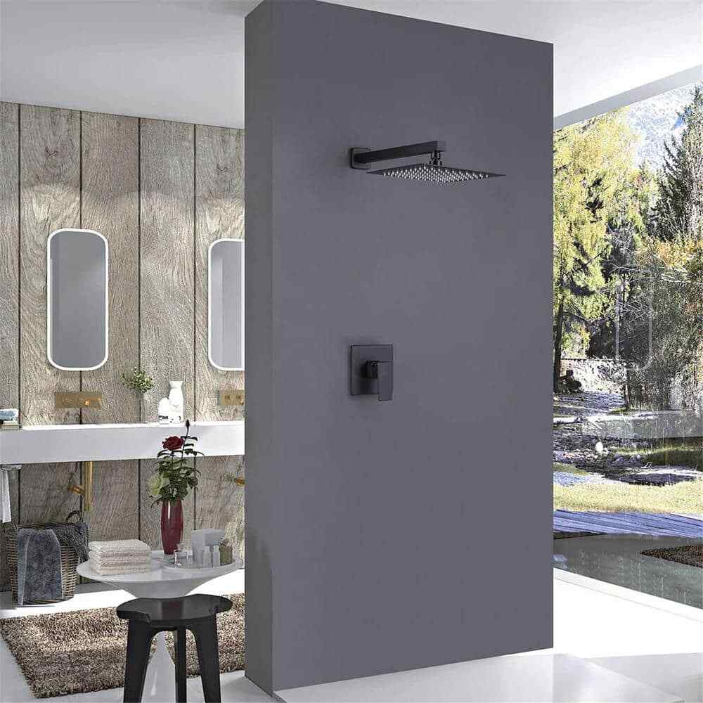 FLG 10 in. Matte Black Shower Faucet w/ Shower Head Brass Shower System