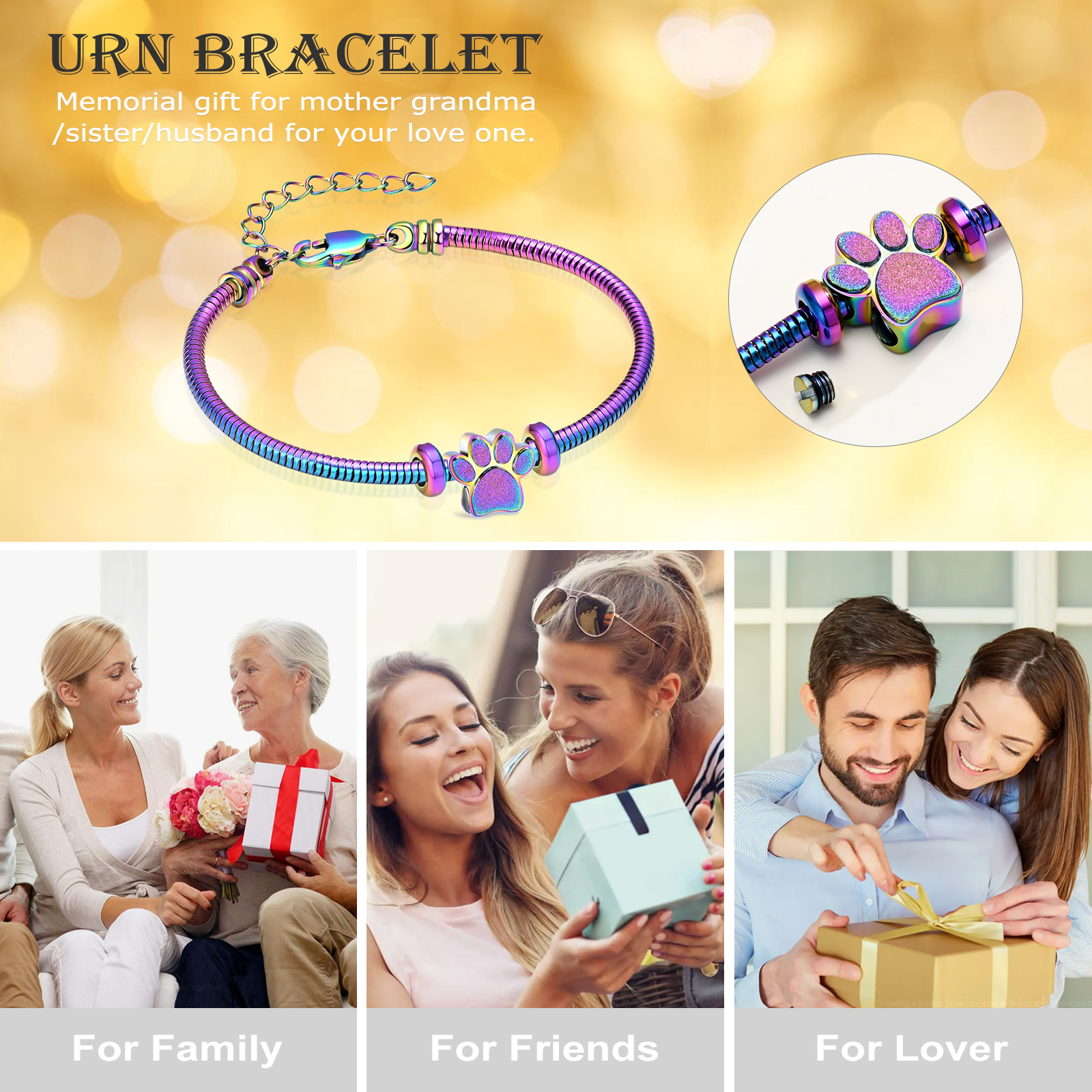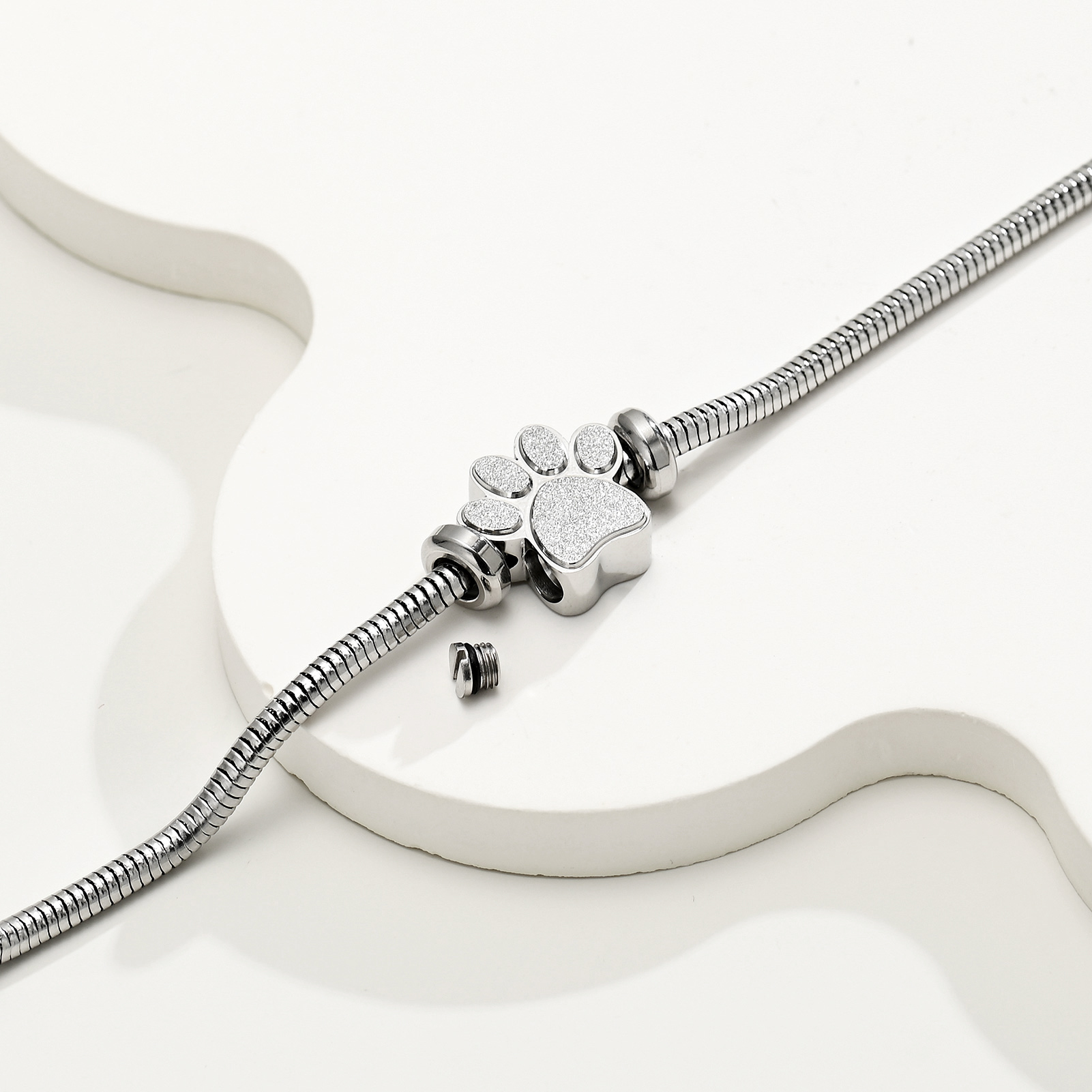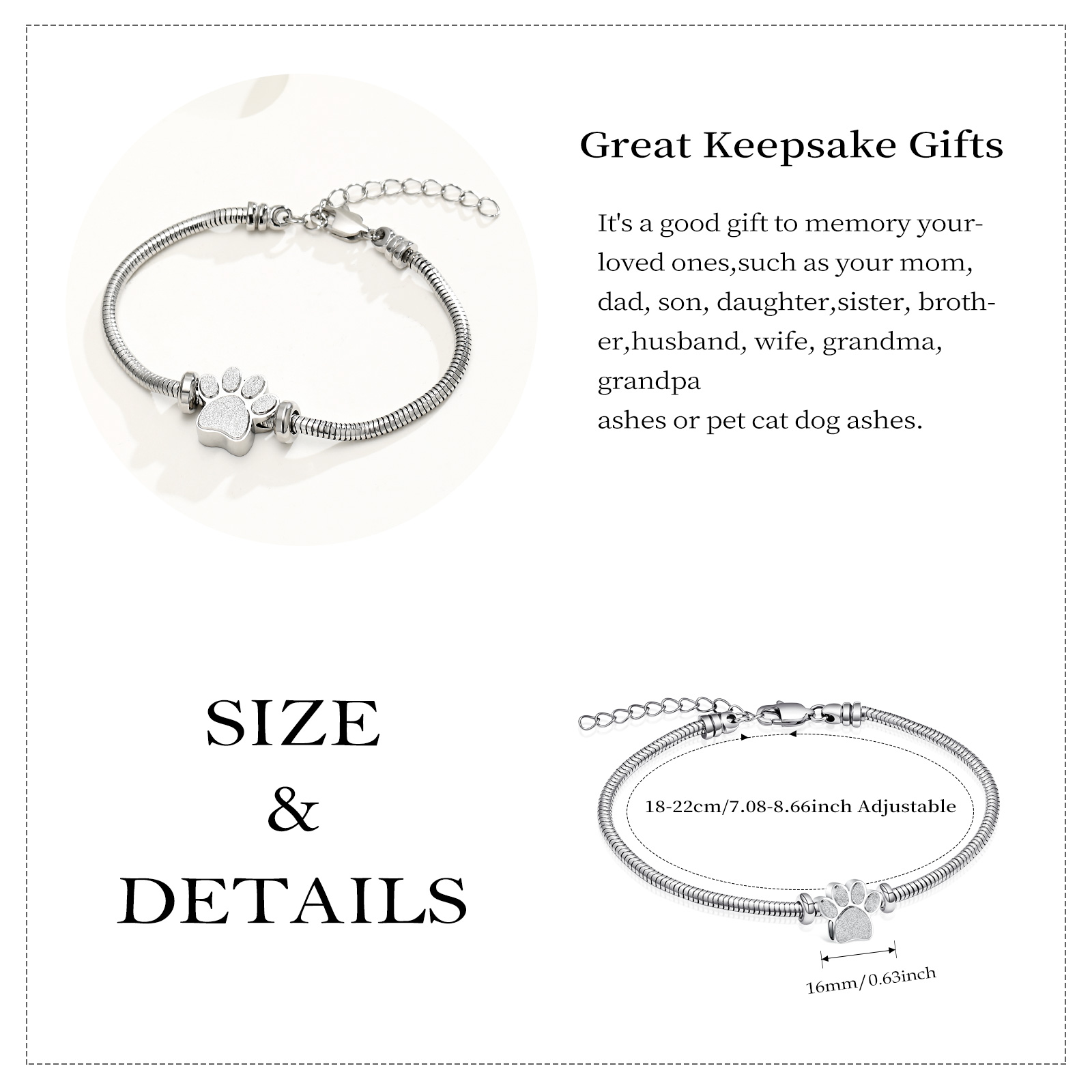 Adjustable Cremation Urn Bracelet for Ashes Stainless Steel Paw Print Urn Bangle