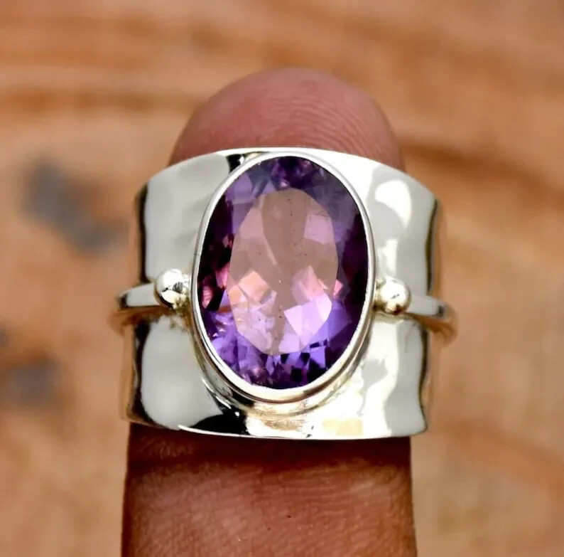 как выглядит Amethyst Solid 925 Sterling Silver Statement Handmade Women Ring, All Size M972 фото