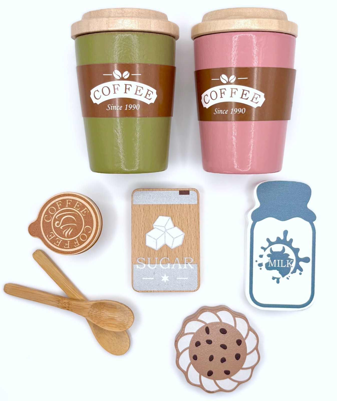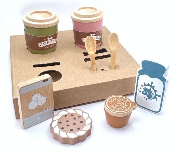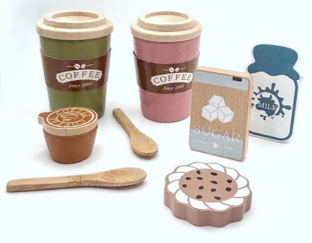 Unisex Wood Wooden Coffee Time Barista Playset Educational Pretend Role Play New