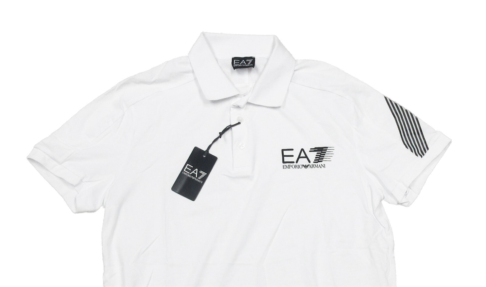 EA7 Emporio Armani Men's White Logo Graphic Short Sleeve Polo Shirt