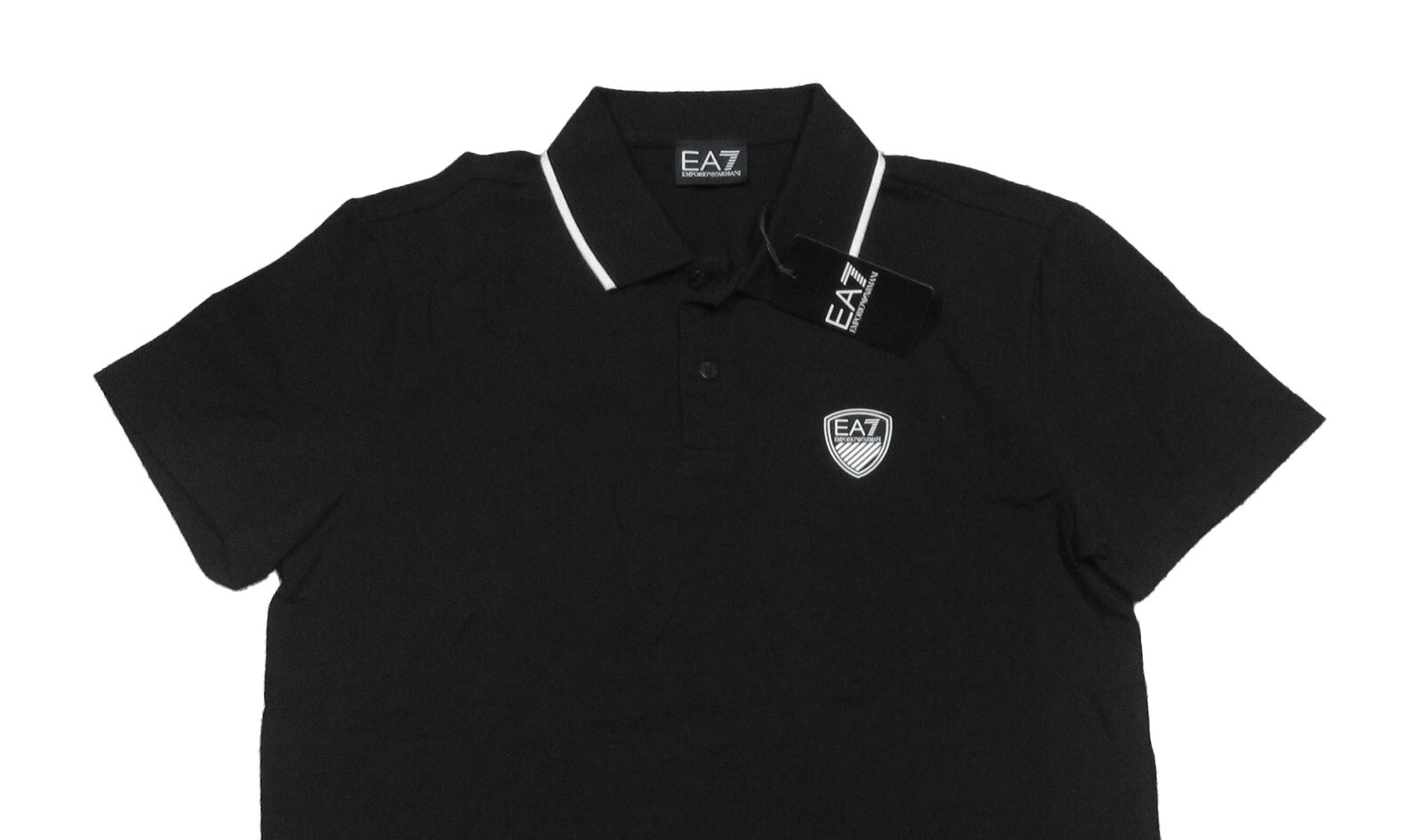 как выглядит EA7 Emporio Armani Mens Black Tipped Short Sleeve Polo Shirt фото