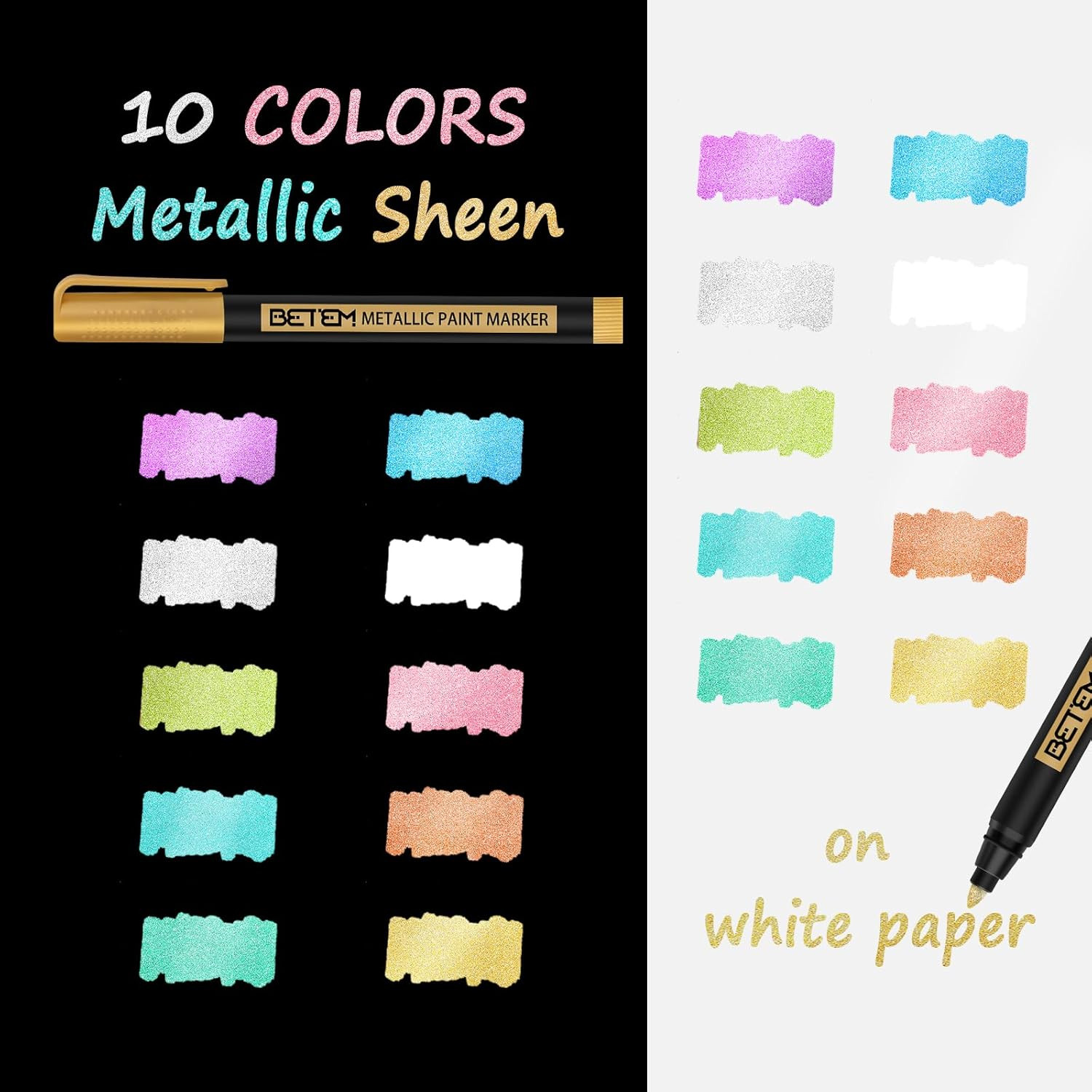 Metallic Paint Markers, 10 Colors Acrylic Markers 1 Count Pack of 10