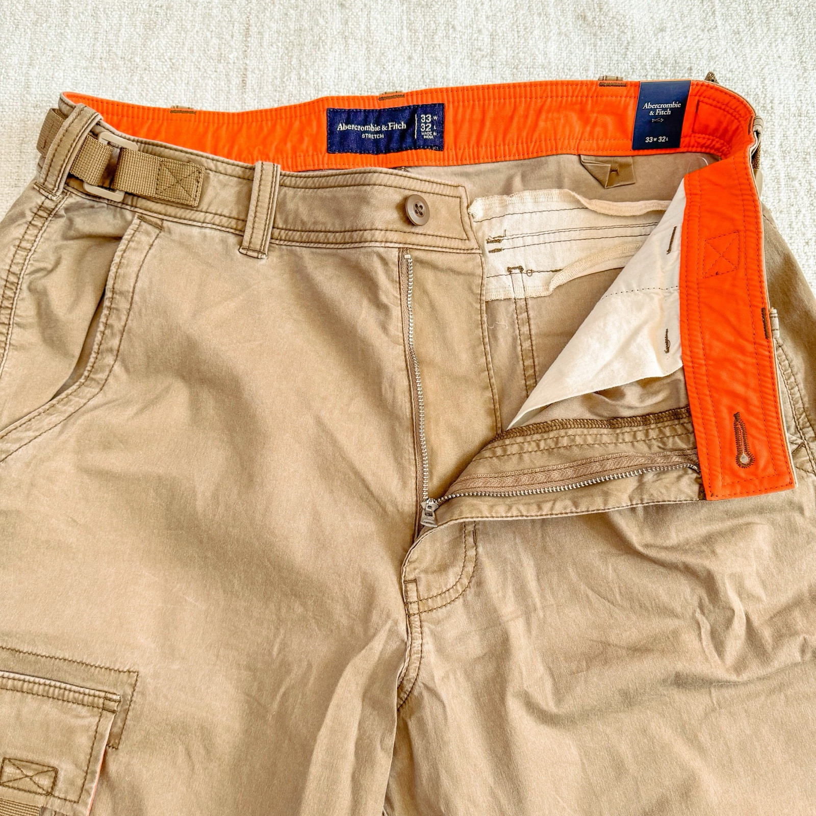 Men s NWT Abercrombie Fitch All Day Baggy Utility Pants Size 33x32 Color Khaki
