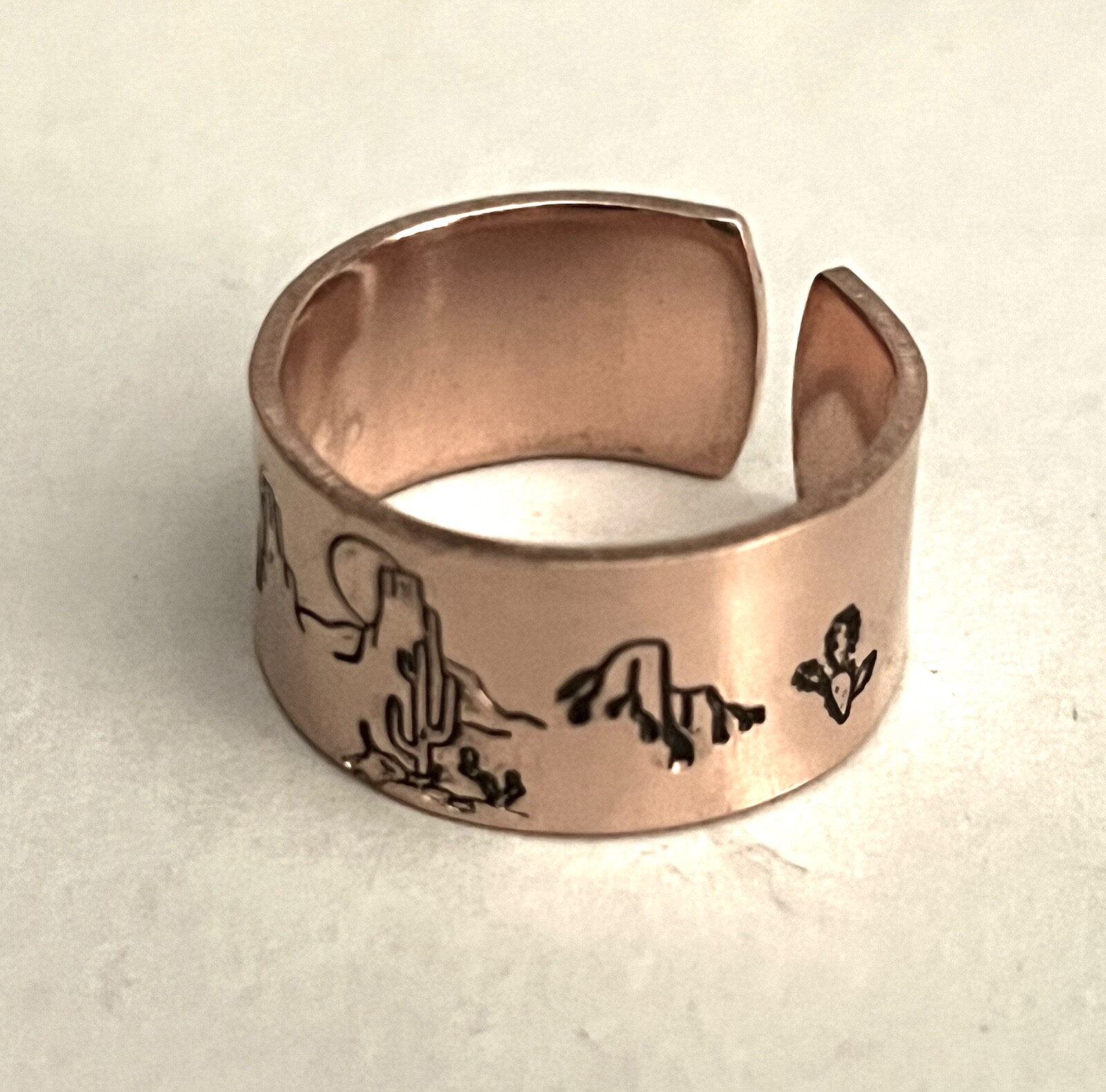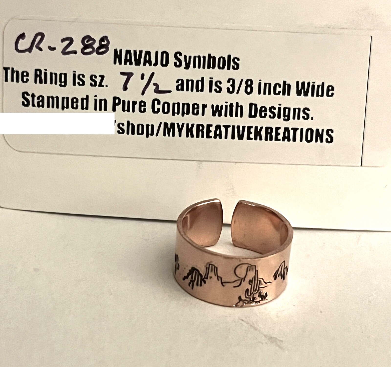 COPPER OPEN BACK DESIGN STAMPED RING SOUTHWEST DESERT SYMBOLS CR-288
