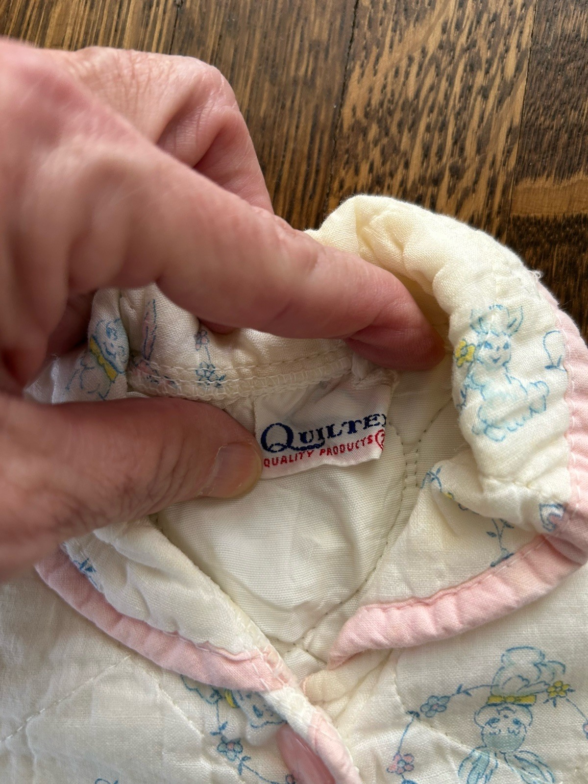 Quiltex Child Quilted Robe W/ Pink trim And Buttons Vintage Early 1960 s Animals
