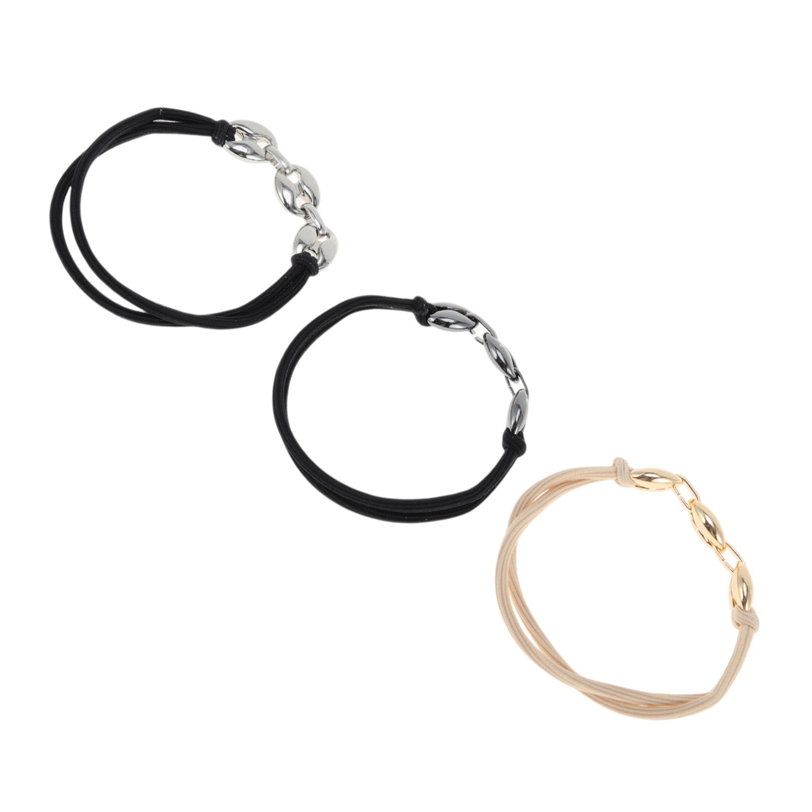 Elegant Bracelet Hair Ties Hair Elastic Band Gold Tone Silver Tone 3 Pcs