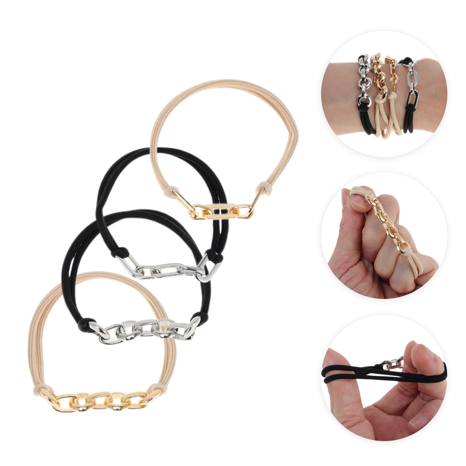 Fashion Bracelet Hair Ties Hair Elastic Band Gold Tone Silver Tone 4 Pcs