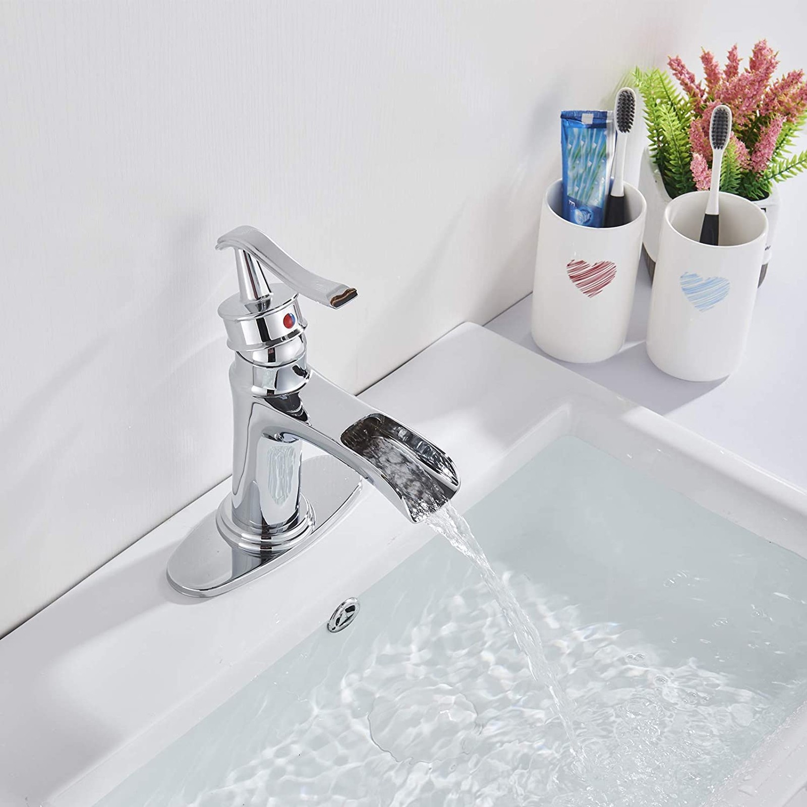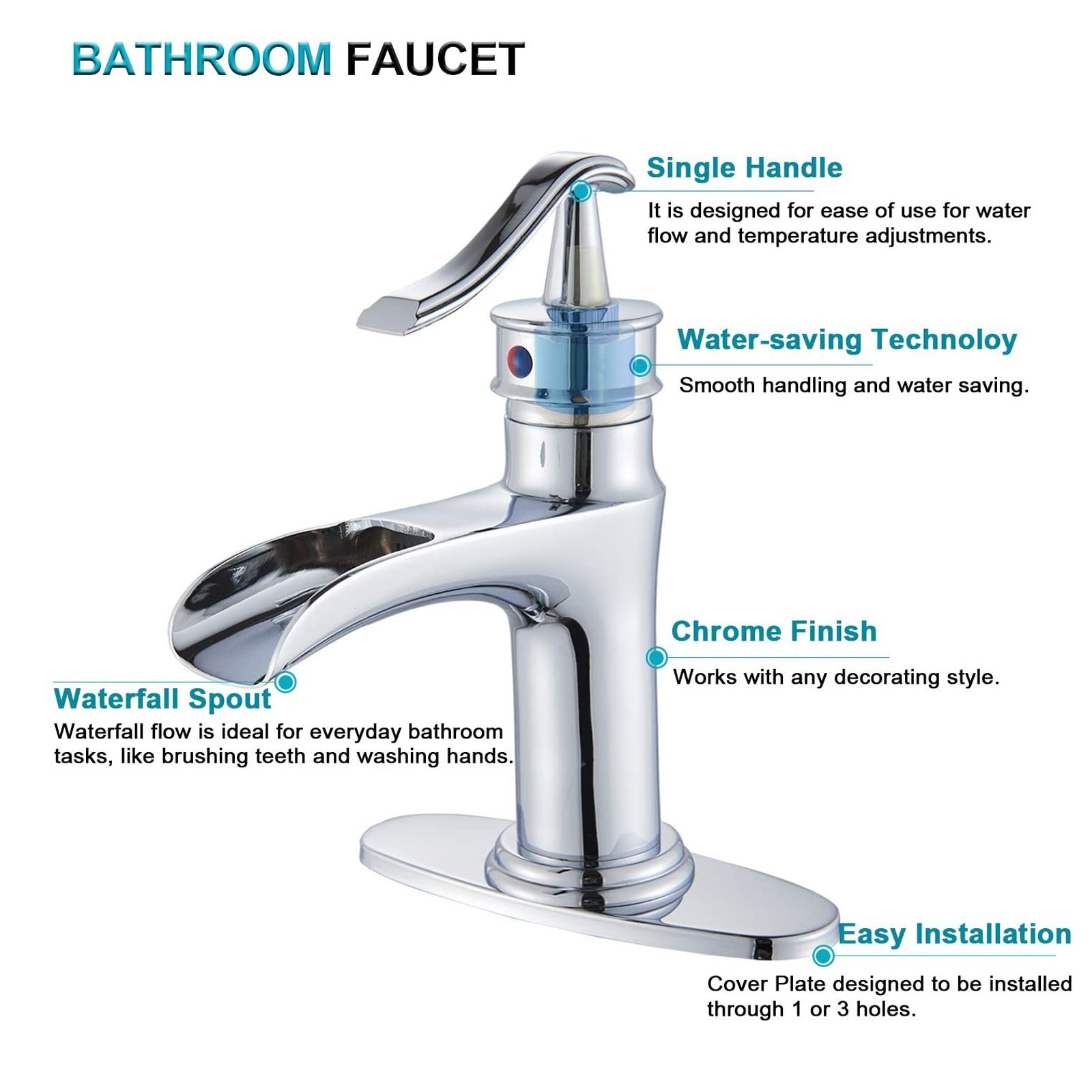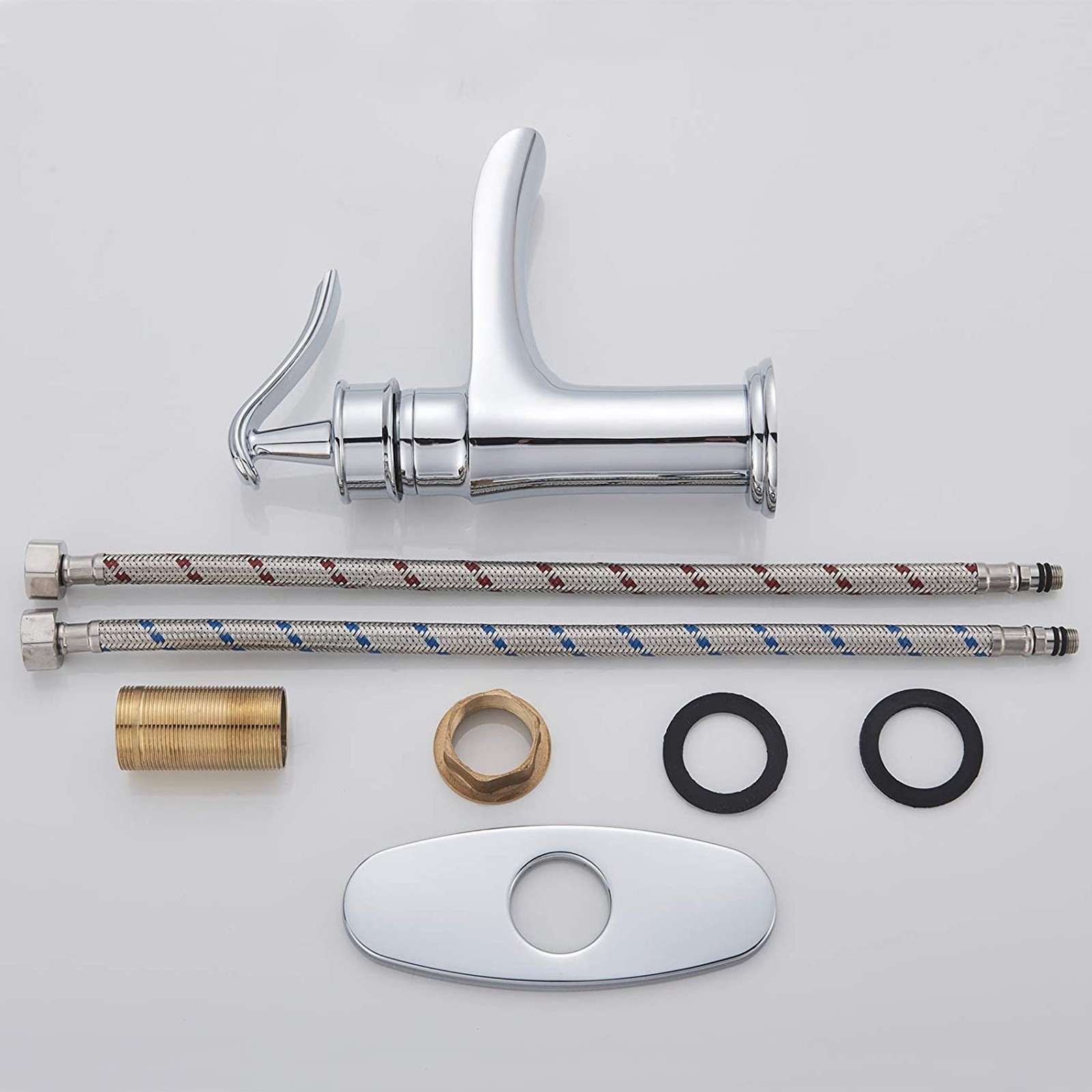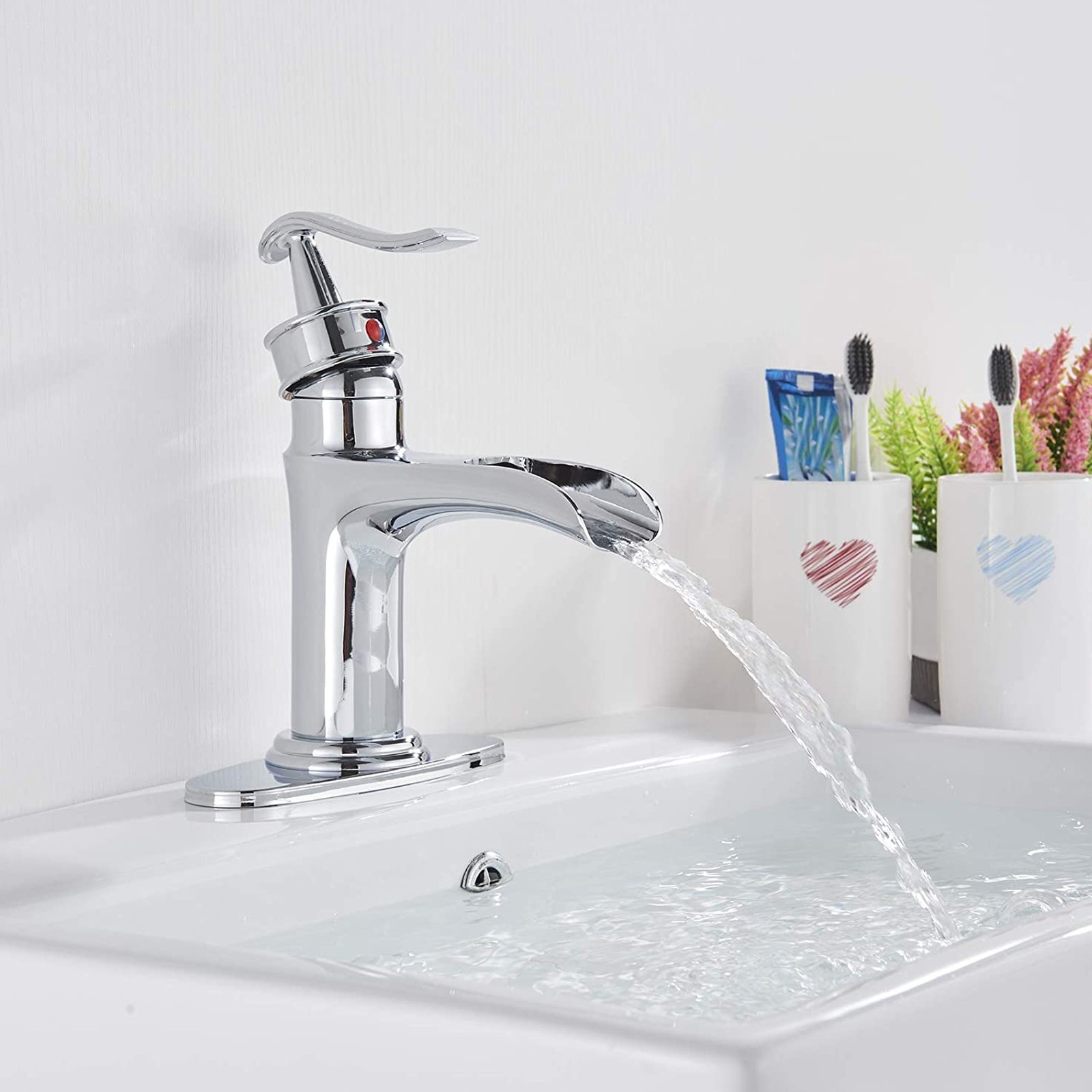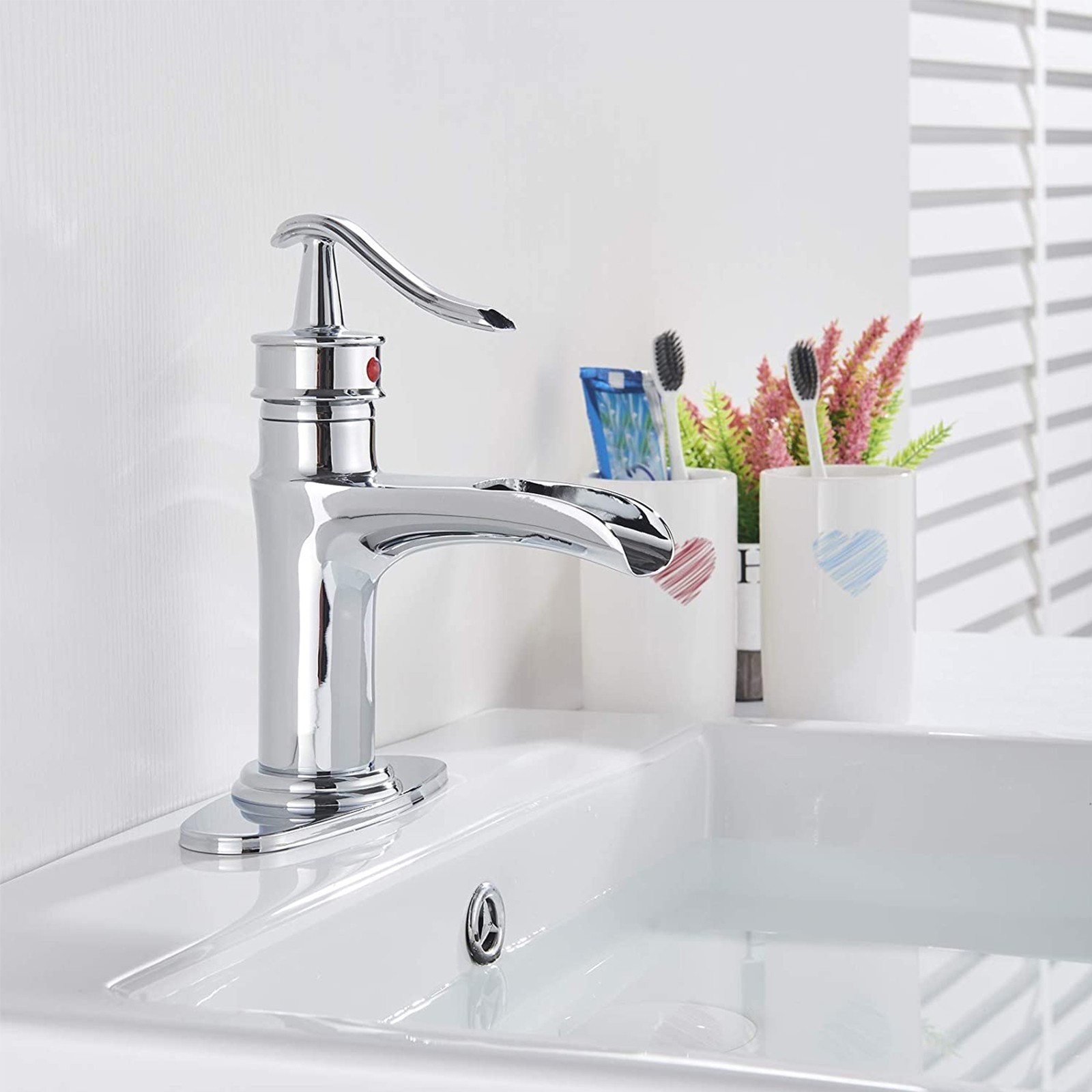 Chrome Single Handle Bathroom Sink Faucet 1 Hole Vanity Mixer with Cover Drain