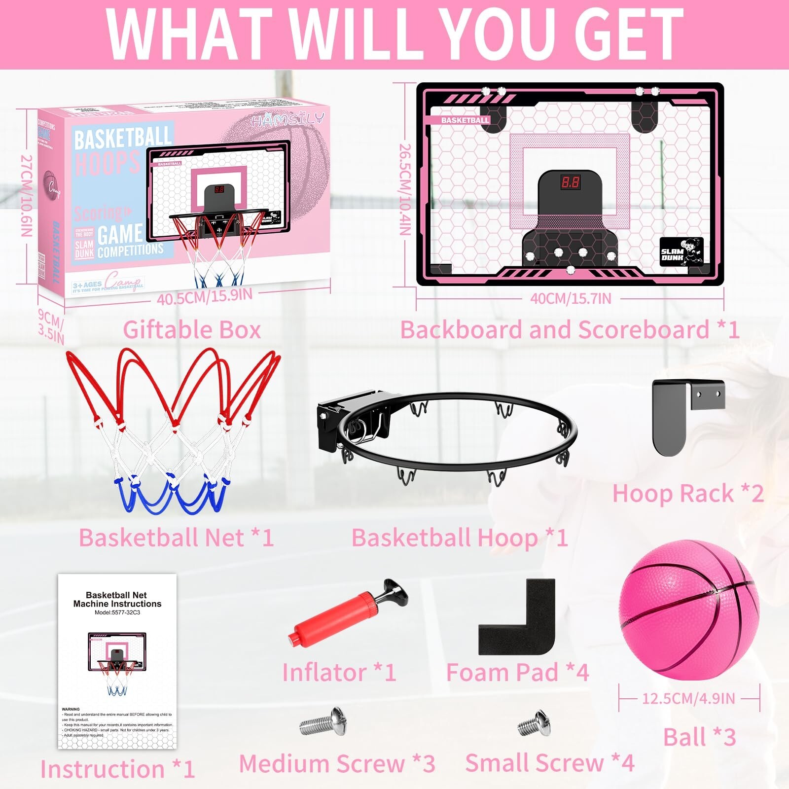 Indoor Basketball Hoop for Kids Girls: LED Light Over The Door Mini Basketbal...