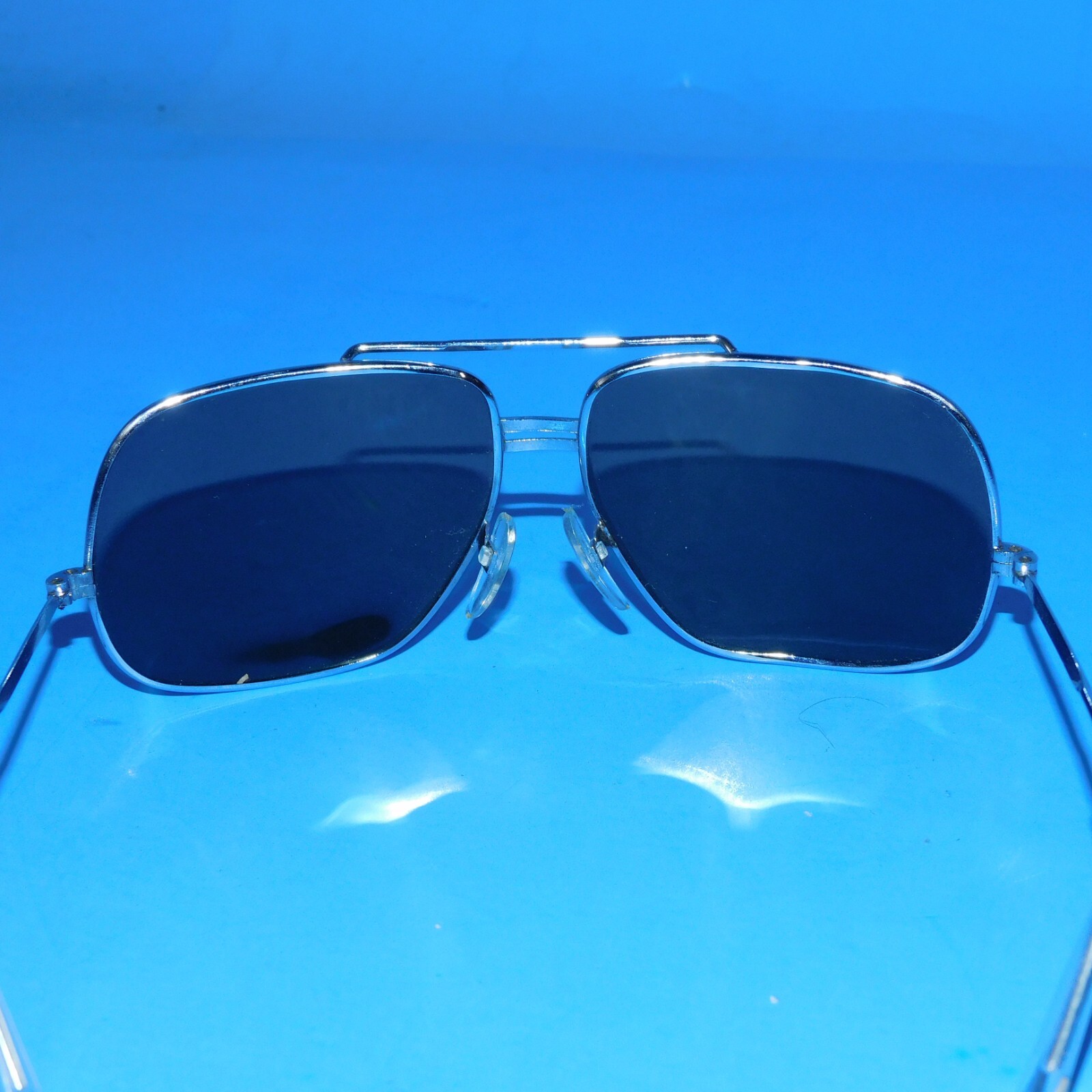 как выглядит VINTAGE MENS R.O.C. TAIWAN SILVER-TONED SUNGLASSES BLUE LENSES фото