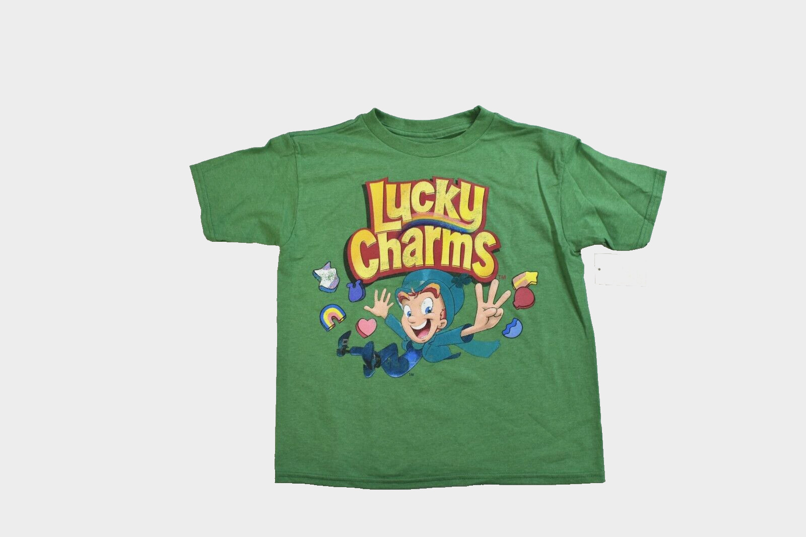 Lucky Charms Youth Boys Leprechaun Mascot Green Cereal Shirt NWT Large 10-12