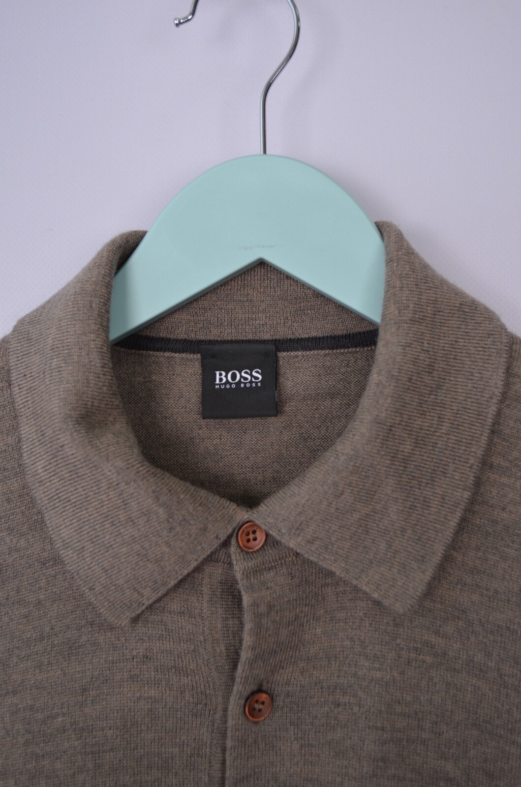 как выглядит Hugo Boss Brown Wool Knit Polo Neck Sweater Jumper Size L фото