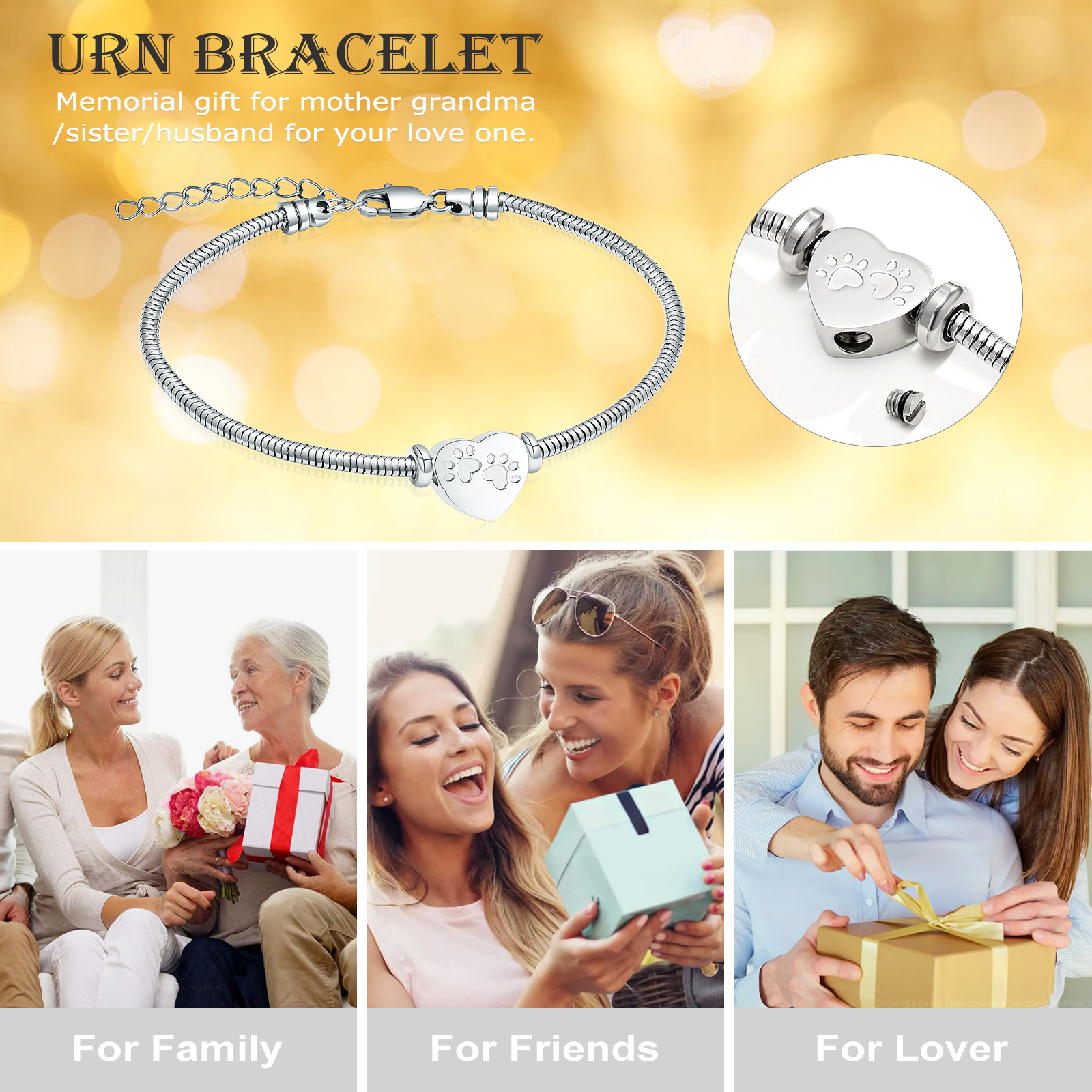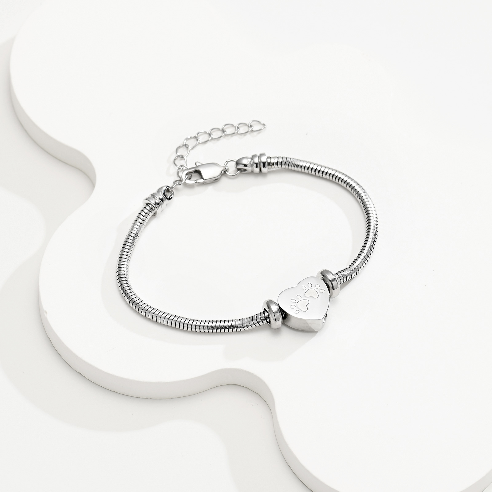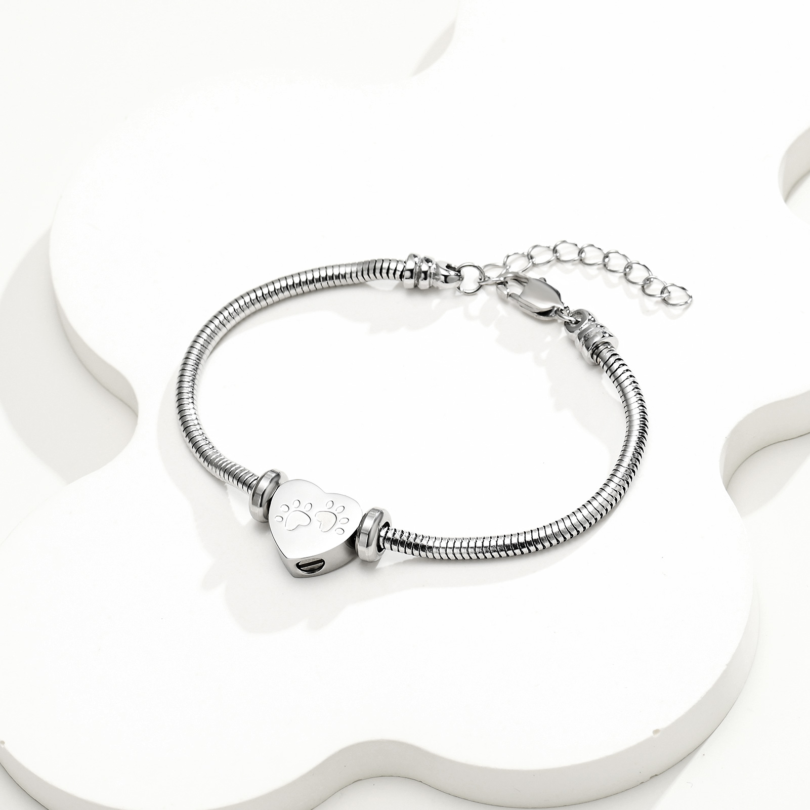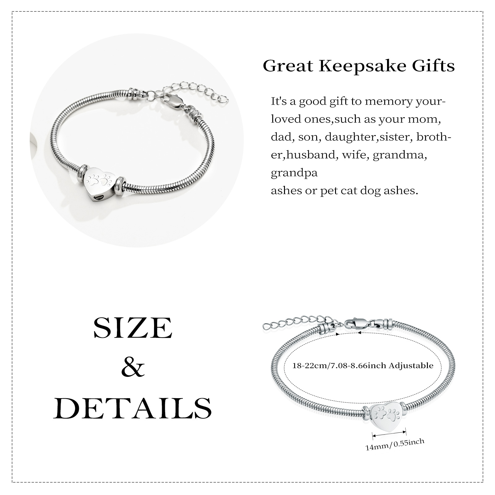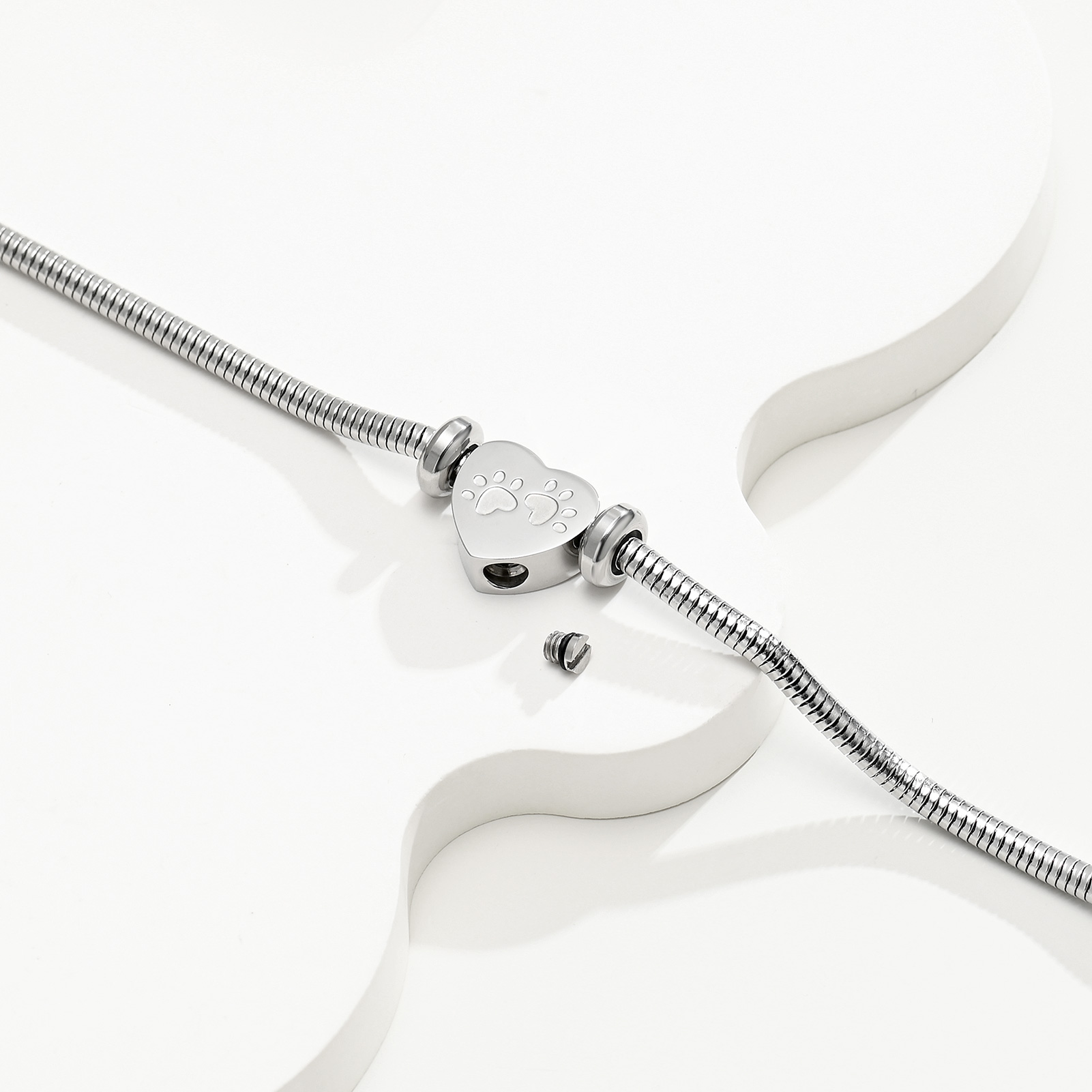 Heart Cremation Urn Bracelet for Ashes -Stainless Steel Paw Print Ash Urn Bangle